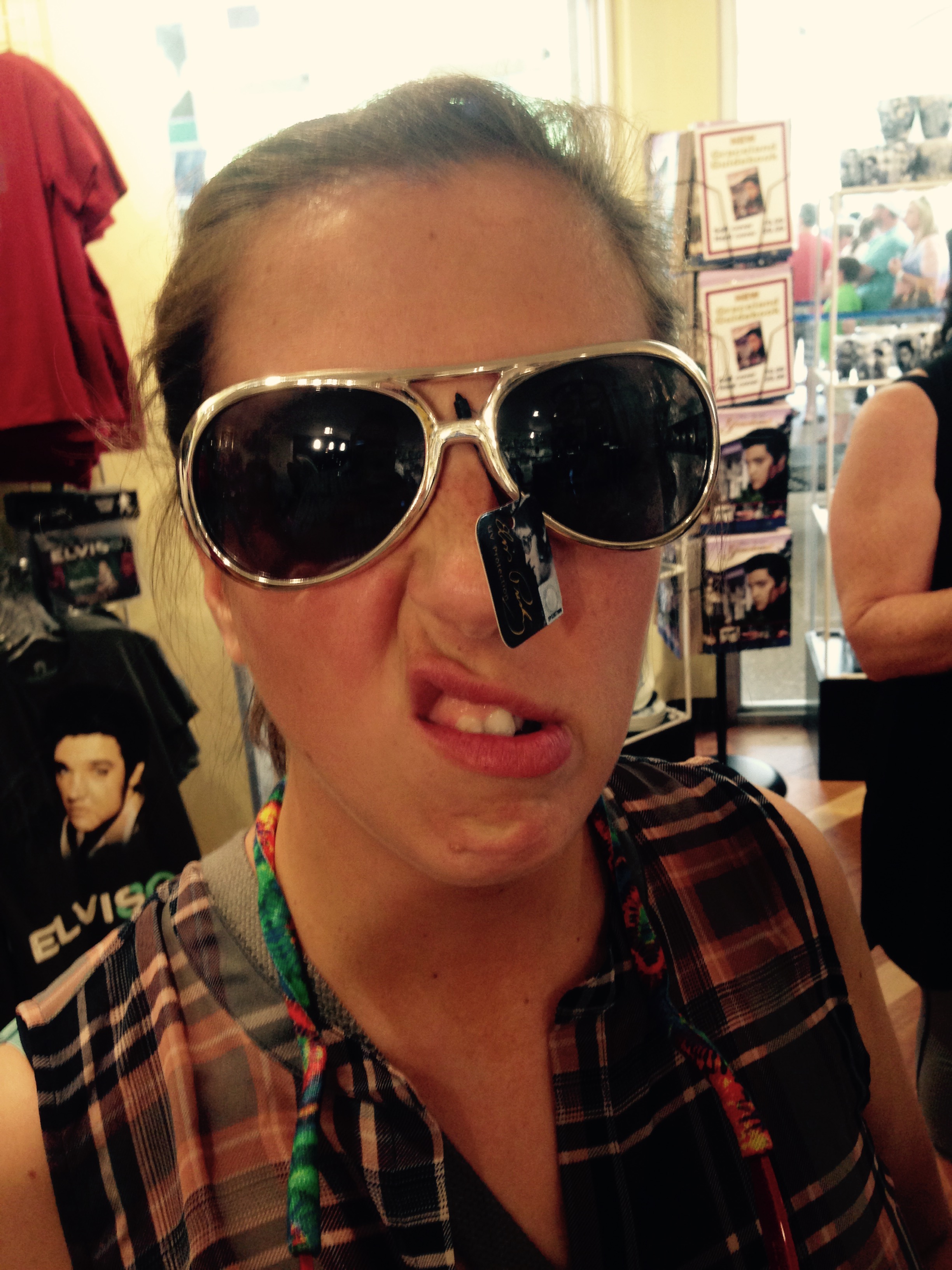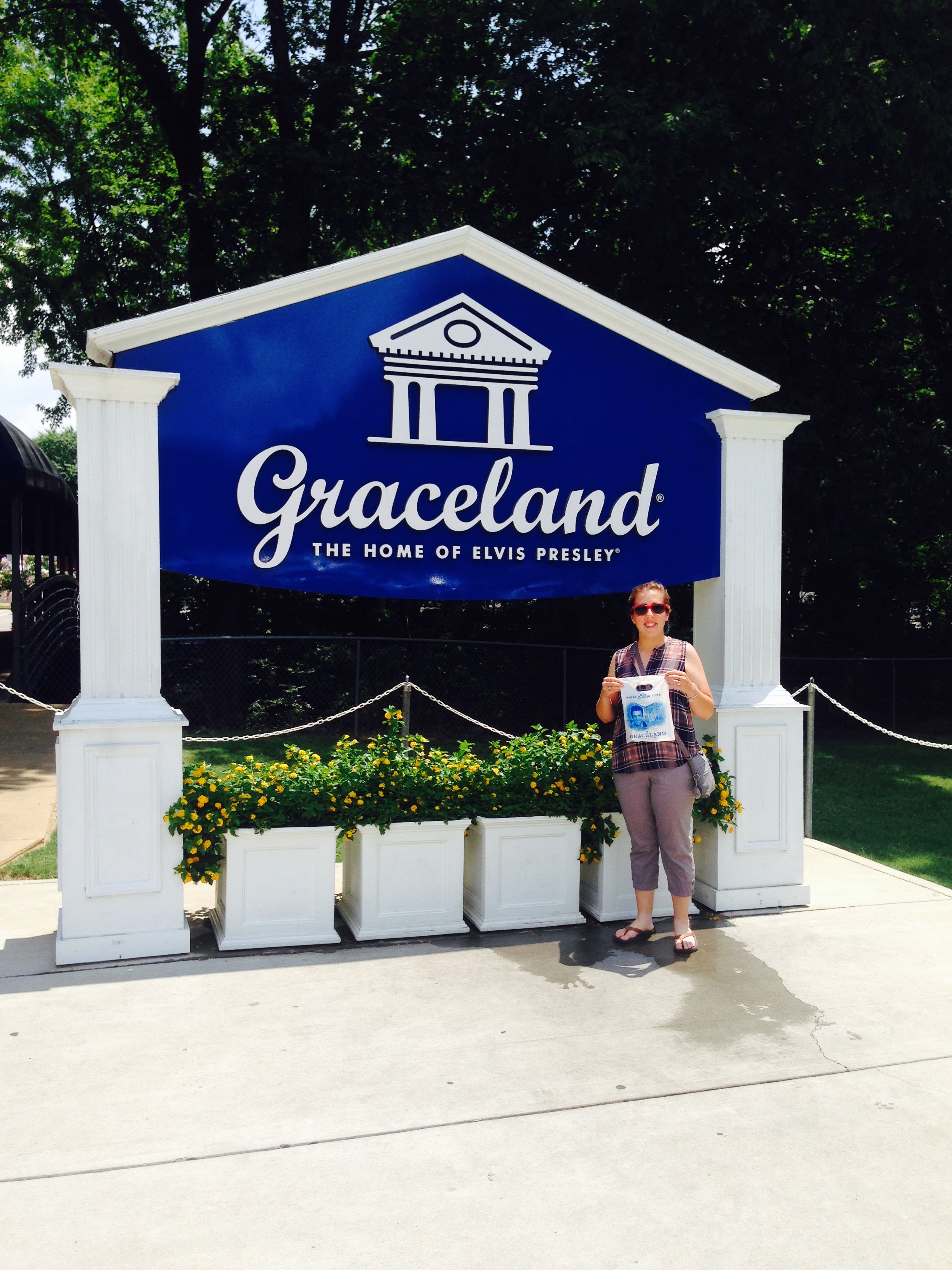 FullSizeRender_1After lunch we drove about 15 minutes to Graceland, Elvis Presley’s home. We paid $10 for parking and walked into the main ticketing lobby. Unfortunately it was $36 Per Person to go see the house and tour. We really didn’t have the time for a full tour to get our money’s worth, nor did we want to spend a combined $72. So instead we went to the gift shop, posed with some glasses, and spent about $12 on souvenirs. We got a peak at Elvis’ private jet, got a picture with the sign and called it a day. If you are a huge Elvis fan, it would be justified spending the $$ and the time there. Don’t get us wrong, we appreciate The King. But we had more pressing things to get to. So with that, we crossed the Mississippi River and headed into Arkansas.