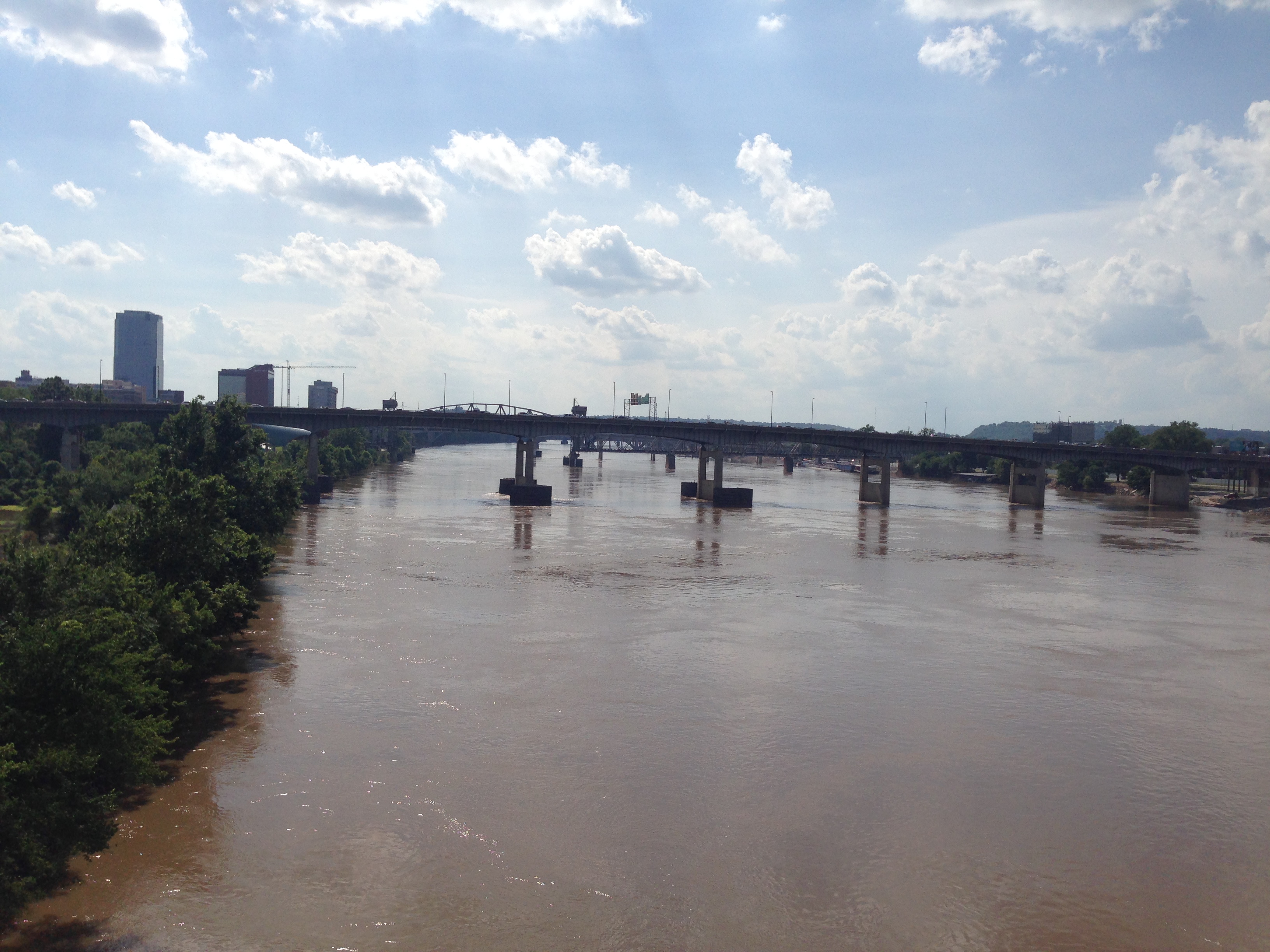 It was now almost 6pm so we headed for the hotel. Top floor with a great view over the Arkansas River, and a few bridges. It was hot, humid and sunny all day. Quickly the weather turned and a nasty stormed moved in. A Flash flood warning and brilliant flashes of lightning. It was pretty neat to watch it all over the water out of our gigantic window.
