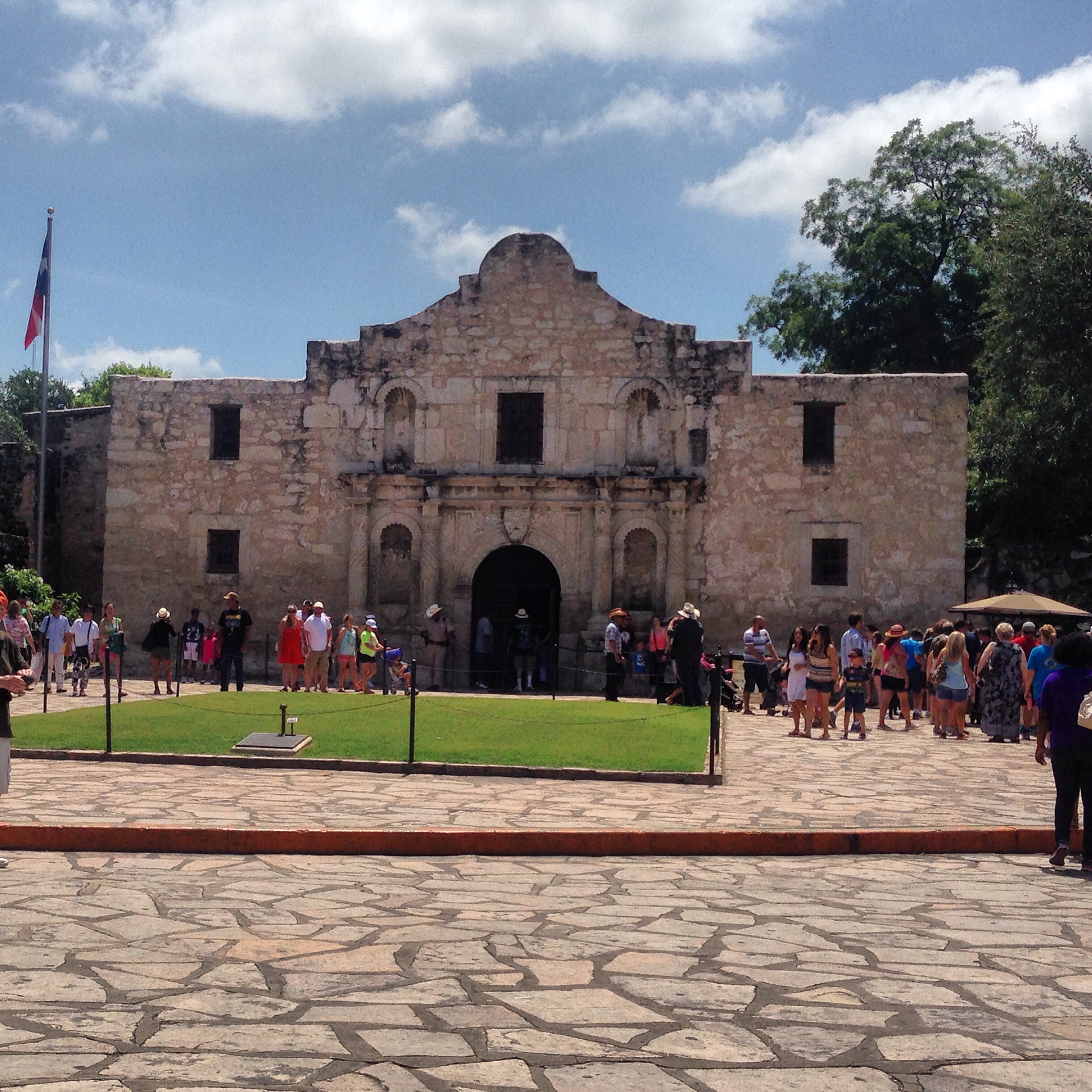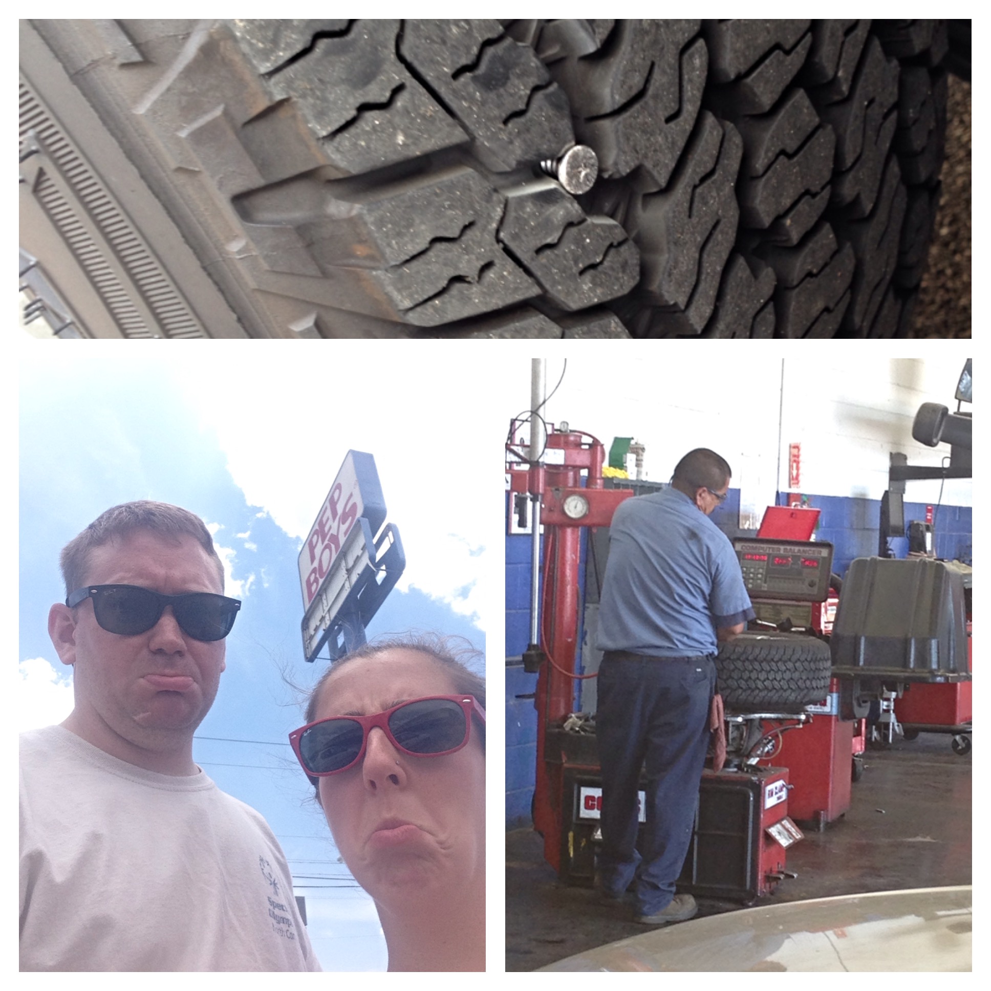It was a really cool, highly rated restaurant (probably for tourists but still) that was located in the Market district. It was an open air market with food, jewelry, gifts, nuns, bands, etc. If we had more time we would have defiantly done that. BUT, no sooner did we park the truck did we notice we had an unwanted visitor on our journey…… a screw. It was stuck right there in the back right tire of our 2015 Chevy Colorado. We just bought the truck in February, we have this great service deal with Chevy so we thought we would take it to a Chevy dealership, they are all over the place. But wait, its Sunday and they are all closed. So we looked up the number for Pep Boys and sure enough they are open. They told us they could patch the tire and it would only be about $22. At this point it’s almost time for our tour, they were pre-paid and scheduled ahead of time. We were a mile away from the Alamo, the tire wasn’t flat (yet) so we decided to go ahead and go on our tour and then immediately go to Pep Boys.