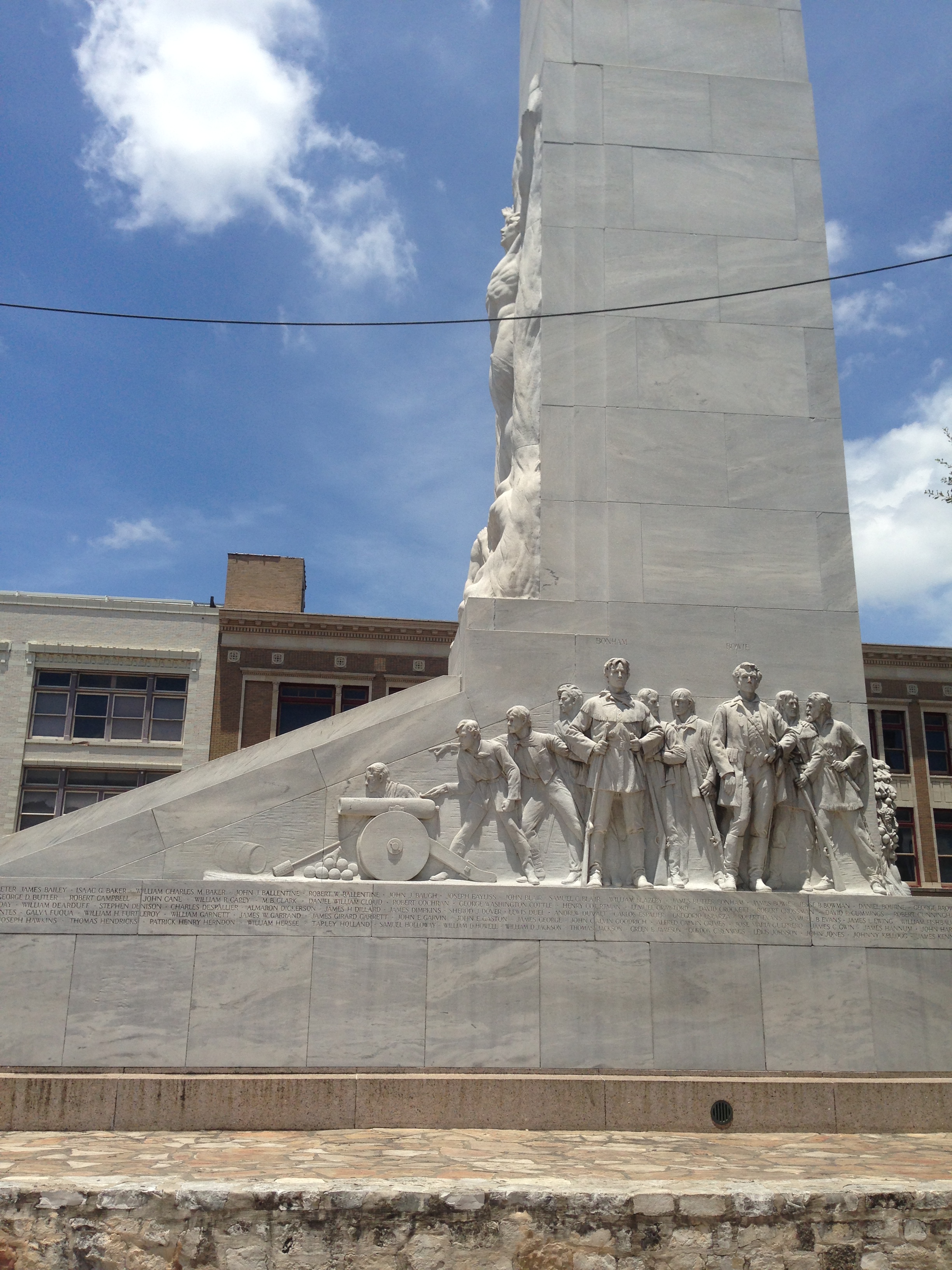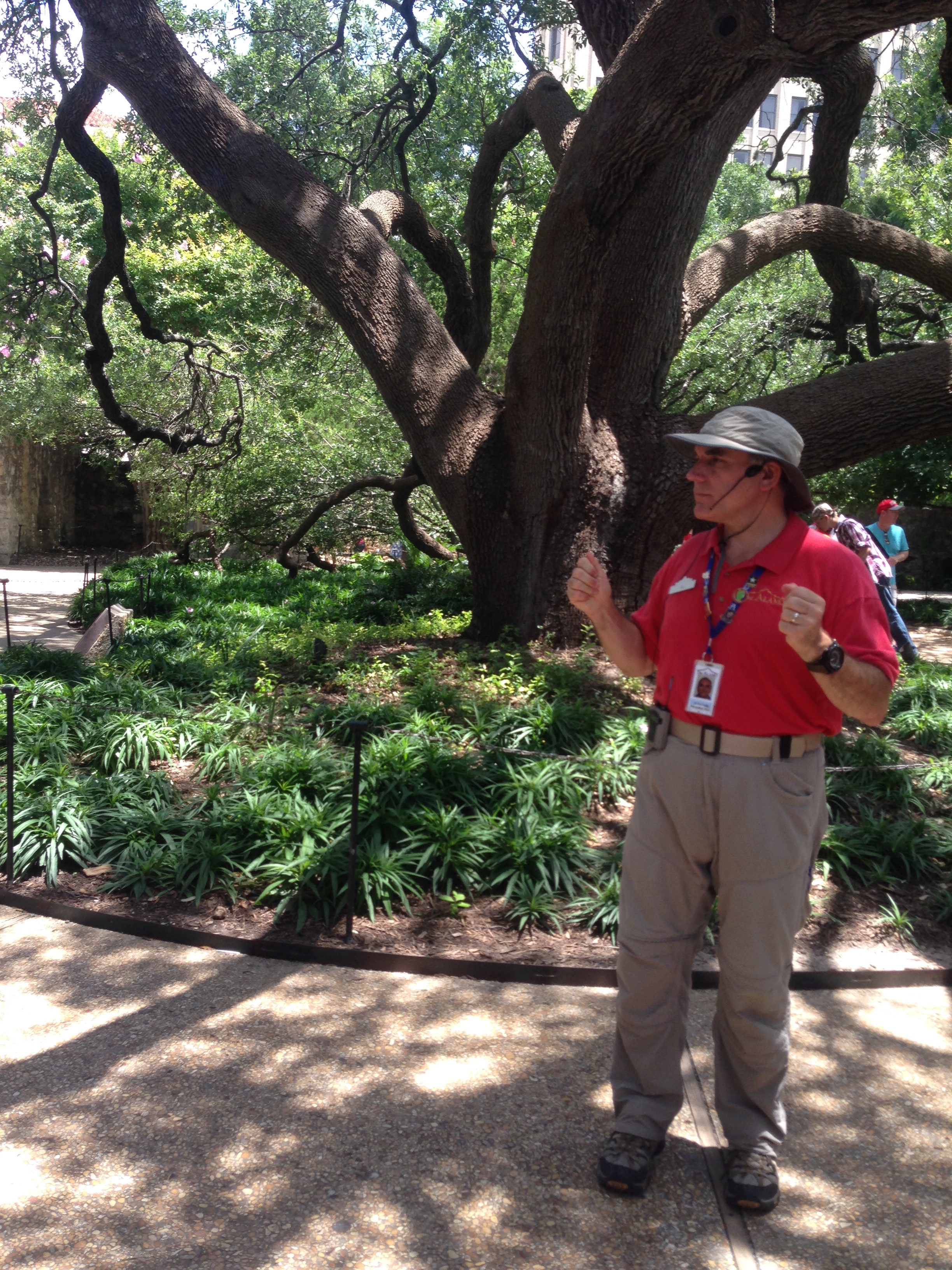 We drove into town and went to The Alamo. You all should remember it, i’m sure. We had scheduled a “Battlefield Tour”. Admission into the Alamo itself it free, which we did go in but could not take pictures. It was pretty crowded in there. Our tour was great, we got a tour guide that was a good tour guide but just a little long winded. Our tour ended up lasting about as long as the actual Battle of the Alamo. We were taken all around the site of the actual battlefield armed with a map of what the Alamo and its complex looked like back then. What was interesting was what we all think of as “The Alamo” (the old Catholic Mission building) was not where most of the fighting happened. Instead it was in the area around it which is now home to a Ripleys Believe it or Not, Snow-Cone Stand, and various other amusement attractions. So the tour was great, we learned a lot, and John bought a full size replica of the “Come and Get it” flag for his classroom. We headed back to the truck and on to Pep Boys.