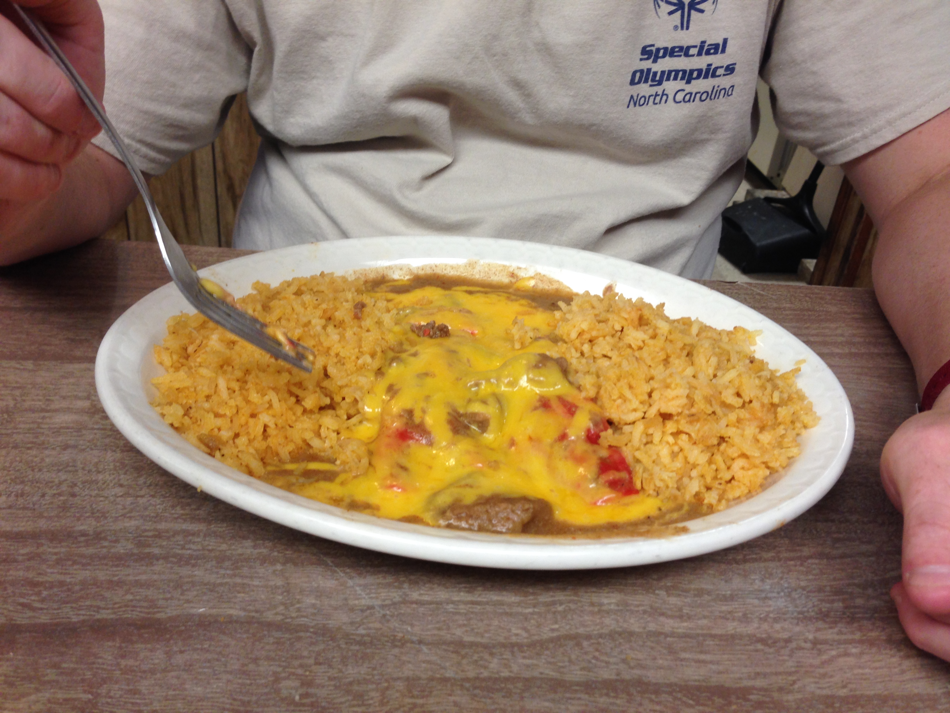 Gilbert proceeds to tell us how he went to Memphis for Elvis’ funeral with only $75 in his back pocket. “And today, today I wouldn’t even go to my own funeral”. At this point he is making us take Mexican candy and shaking our hands (both of our hands at the same time if you can image that. John’s in his left, Danielle’s in his right). We walked over to Pep Boys and felt better for having met Gilbert. We didn’t think to get a picture with him but here is one that was found online (with random people we don’t know) and I think captures the man and the restaurant atmosphere nicely.