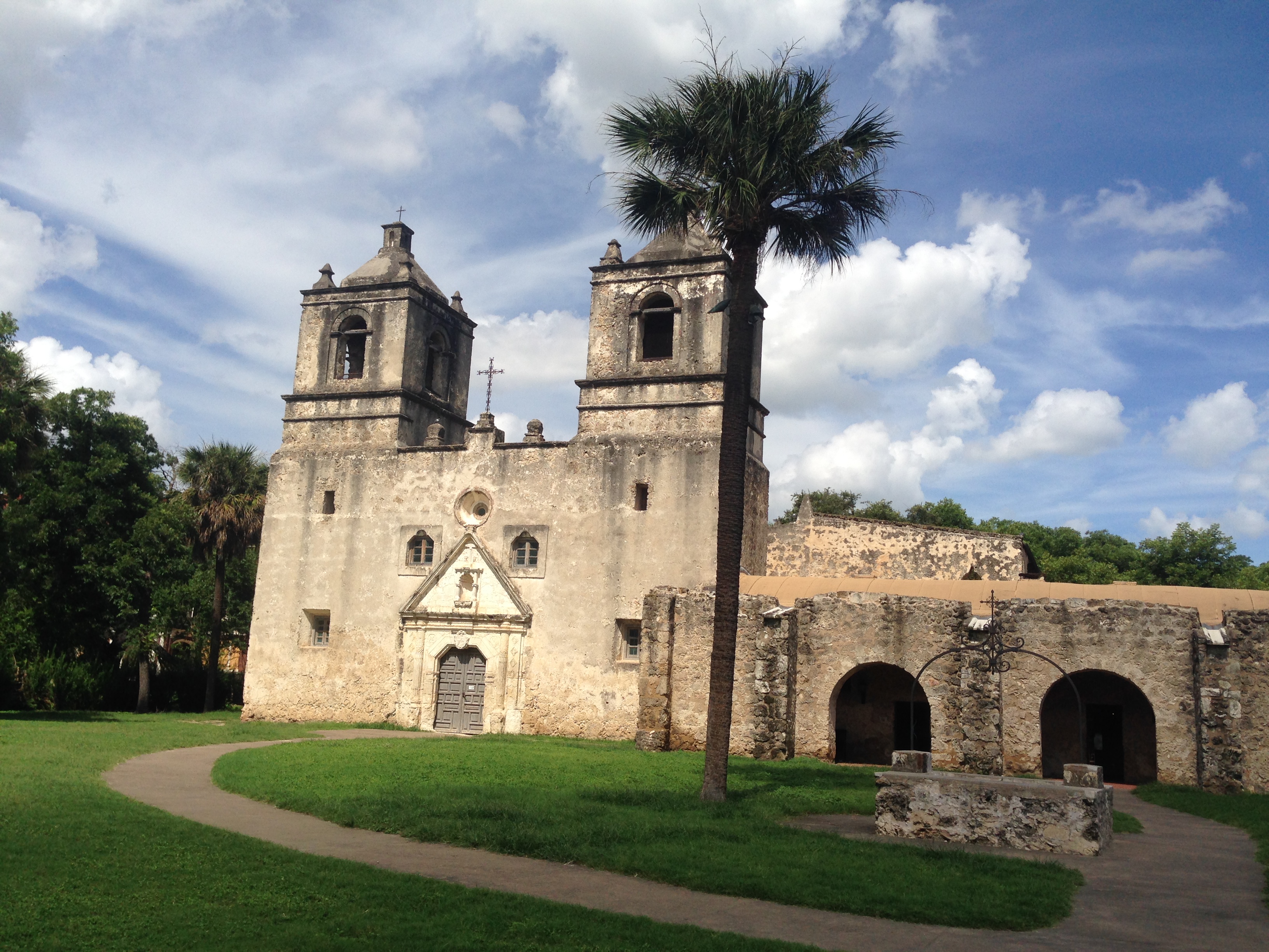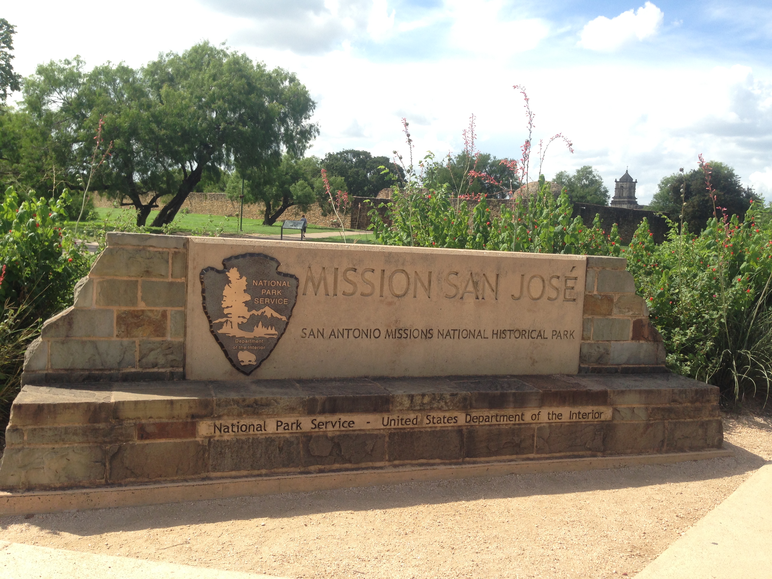 We walked back over to Pep boys. The car was still not done, so we “browsed” the store and settled on a Sun Shield for the truck since it was 100° today in Texas and sunny. The mechanic was back from lunch (probably not as good, or as interesting as ours) and was working on the tire. Everything checked out, it was an easy fix and we were ready to pay! “$11.73” the guy says. He explained he gave us a discount because we had to wait! Sweet, so that $11 Sun Shield was basically free! We got in the car and headed back into San Antonio to go to the San Antonio Missions National Park.