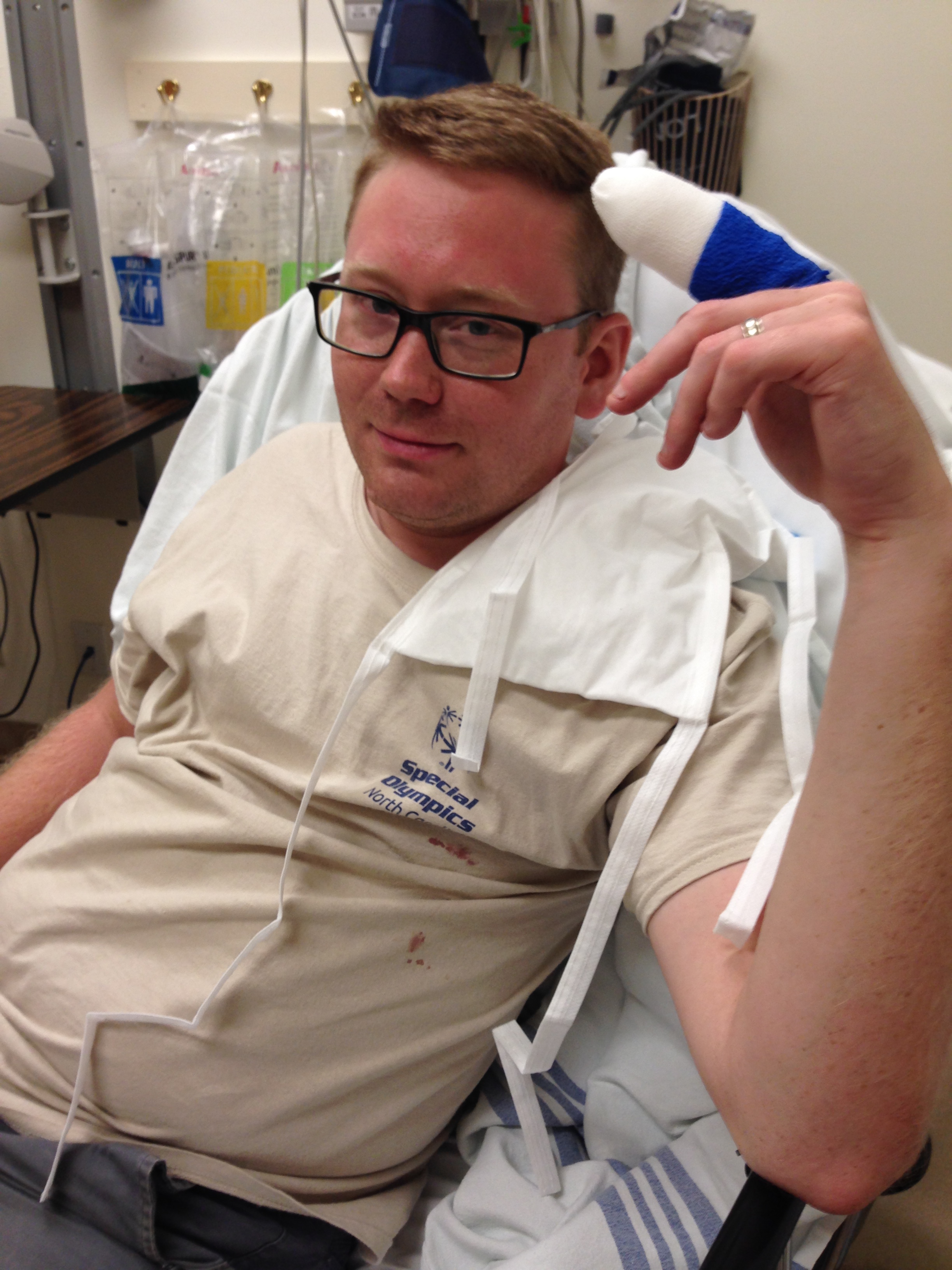 “Danielle, I cut my finger and its really bad!”. Oh no… not really what anyone wants to hear, especially not at 9pm, after a long day about a quarter mile from your car. Like any good captain, John went down with his ship truck. Accidentally sliced the top of his left index finger, gushing blood. Blood everywhere. Soaked through all of the paper towels we put on it. Ok yeah, this needs medical attention. So we grab what we need to and head to the car, get the first aid kit. Get some gauze out, wrap it in some more paper towels pretty tightly and get into the car. Danielle drove the 16 miles back into town and to the closest Hospital. I guess you could call this “getting a taste of the local culture”, because Hill County Memorial Hospital was the place to be on a Sunday Night. We checked in and waited for about 30minutes. John was triaged, they took off our make-shift bandage and started gushing blood again. They cleaned it out (painful) and determined it couldn’t be stitched but it was cut really, really deeply. Medical term: Arterial Avulsion. Basically filleted the top of his finger off. They moved John to another room where the doctor and nurse took the first dressing that they did off and Bam! gushing blood again. After a few very painful minutes and a lot of pressure, they get a new dressing on using a clotting gauze and about 100 more layers of various other gauzes and wraps. 3 hours and $233 later we were headed back to camp.