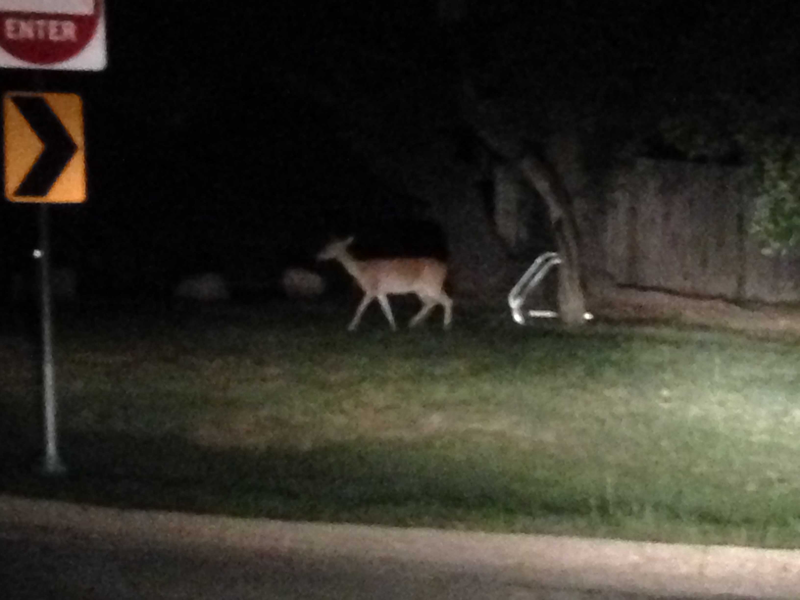 Its going on 1 am at this point. We are tired, John is down to 9 1/2 digits, and we just want to lay down. We turned onto the road to take us back to the campground and guess who shows up. Deer. Not just a few either. In the 16 miles back to camp we saw 19 deer, 4 of which ran out in front of us. As we turned into the main entrance of the campground we saw this one making it 20.