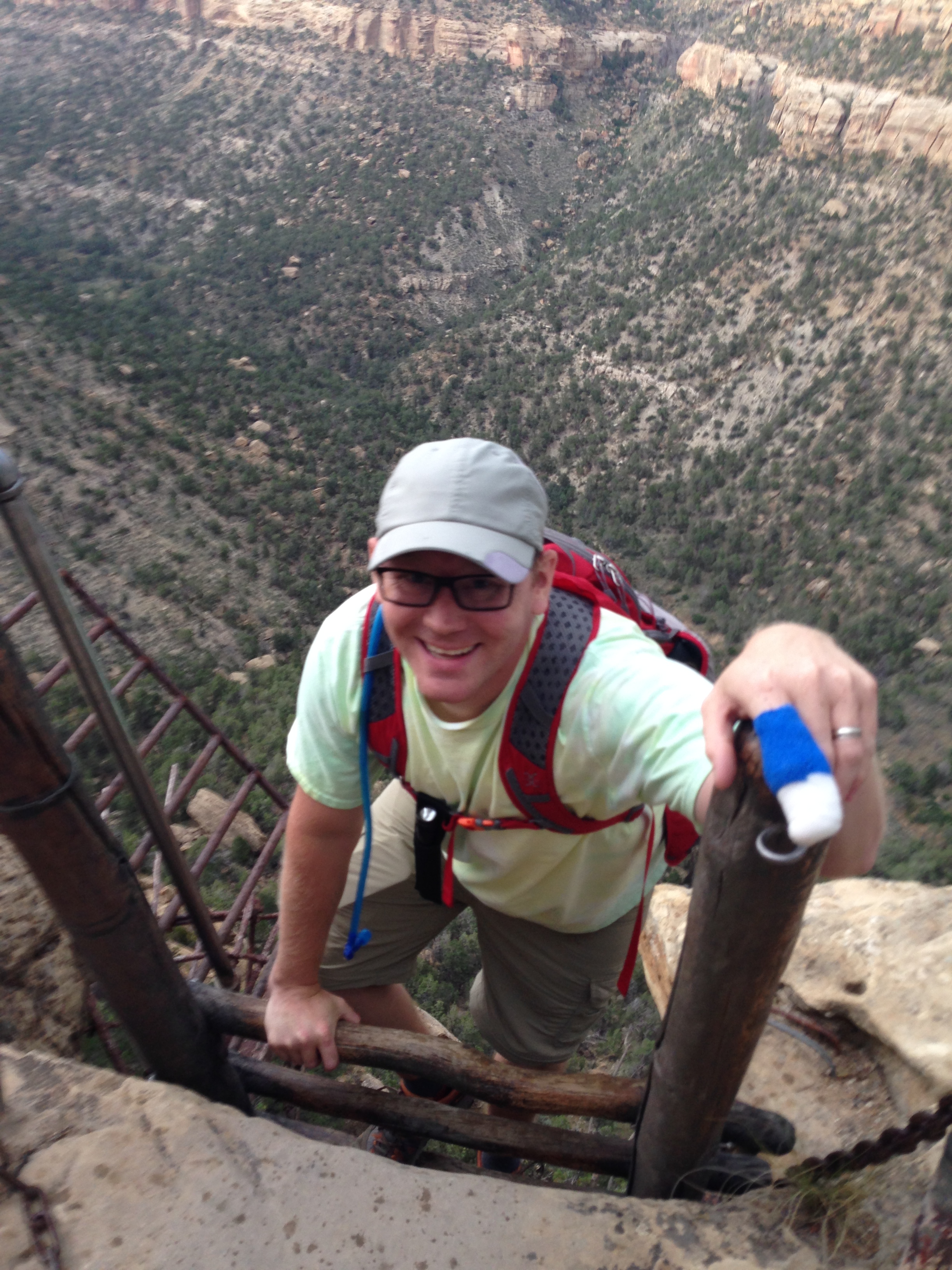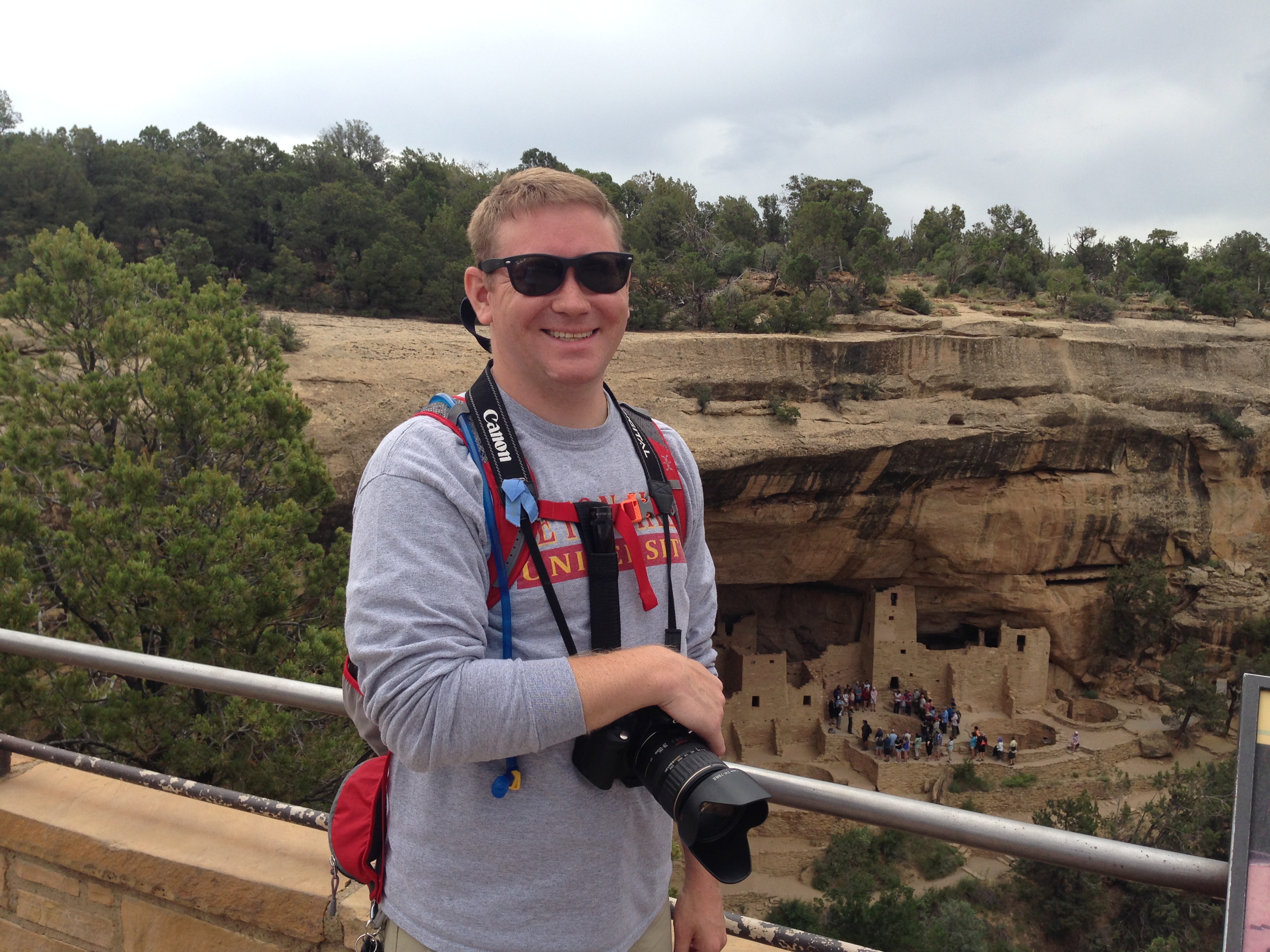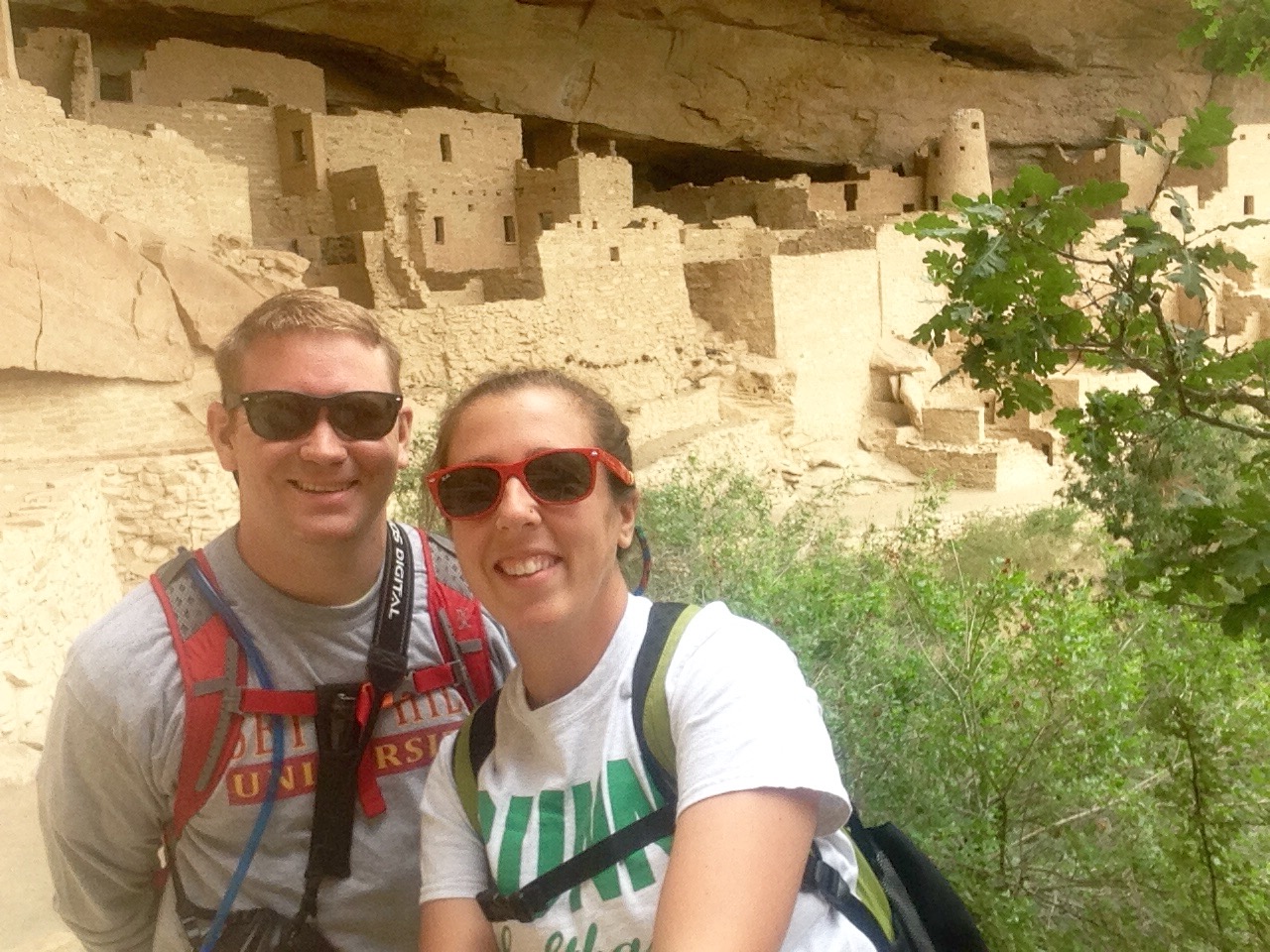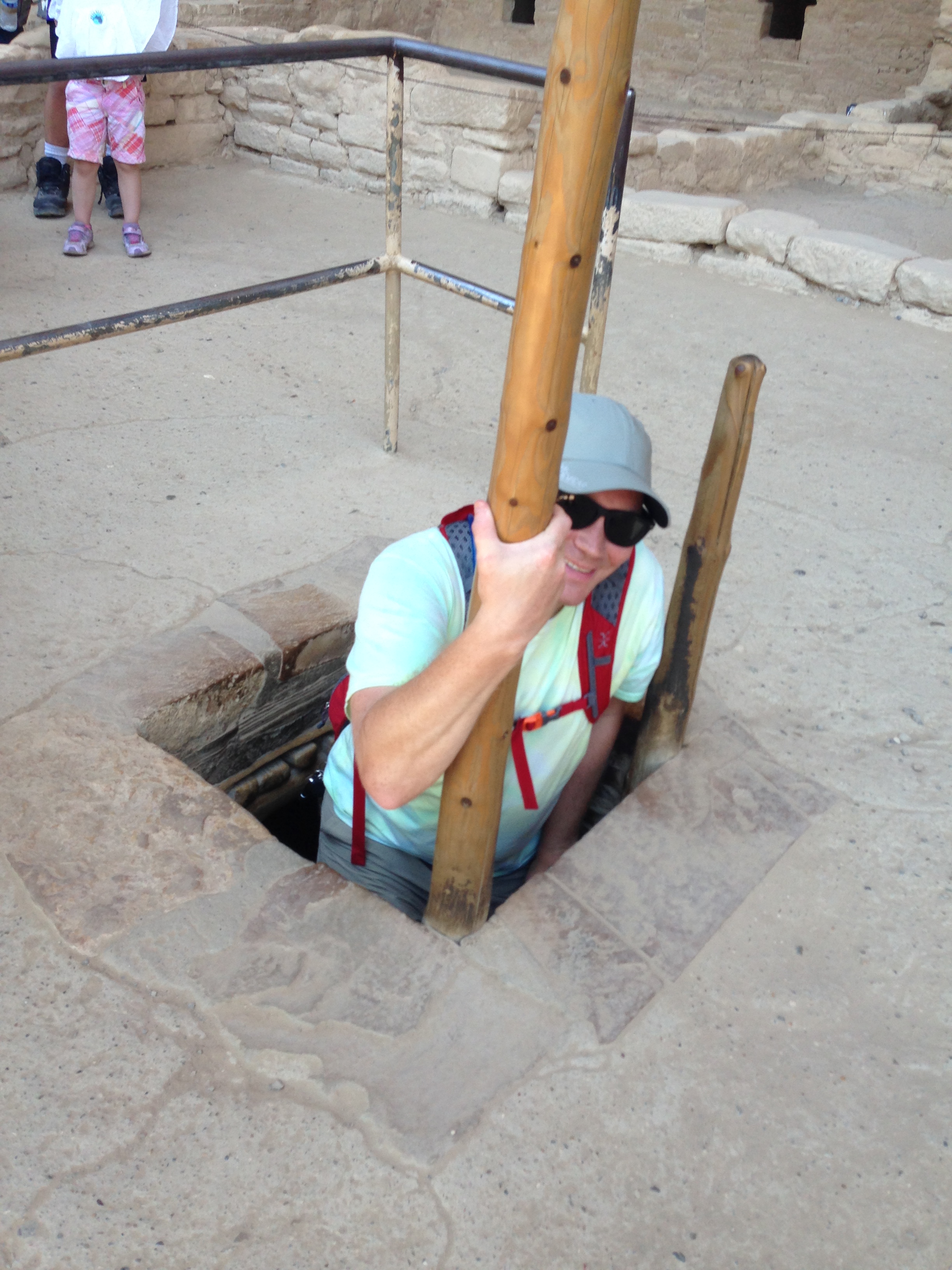 Our first tour was at 10am at Cliff Palace. Cliff Palace is the largest of the dwellings, and probably the most iconic. You can clearly see the dwelling from a little overlook. However, we got to go right in there and get a better look with the Ranger guided Tour. You have to climb some ladders but nothing too outrageous. These cliff dwellings are from Ancestral Pueblo People dating far back as 620 c. e. with the most recent being 1100-1300 c.e. The people moved off of the Mesa top into the dwellings to make more room for growing crops above. Thousands of people would live in the cliffs, with 100-150 occupying Cliff Palace. They also had areas called “Kivas”. Kivas are little under ground covered rooms that they used for religious purposes, entertaining, and a family room… basically where The Pueblos gathered around and watched the Steelers game every Sunday. The tour lasted about an hour and we got some pretty sweet pictures.