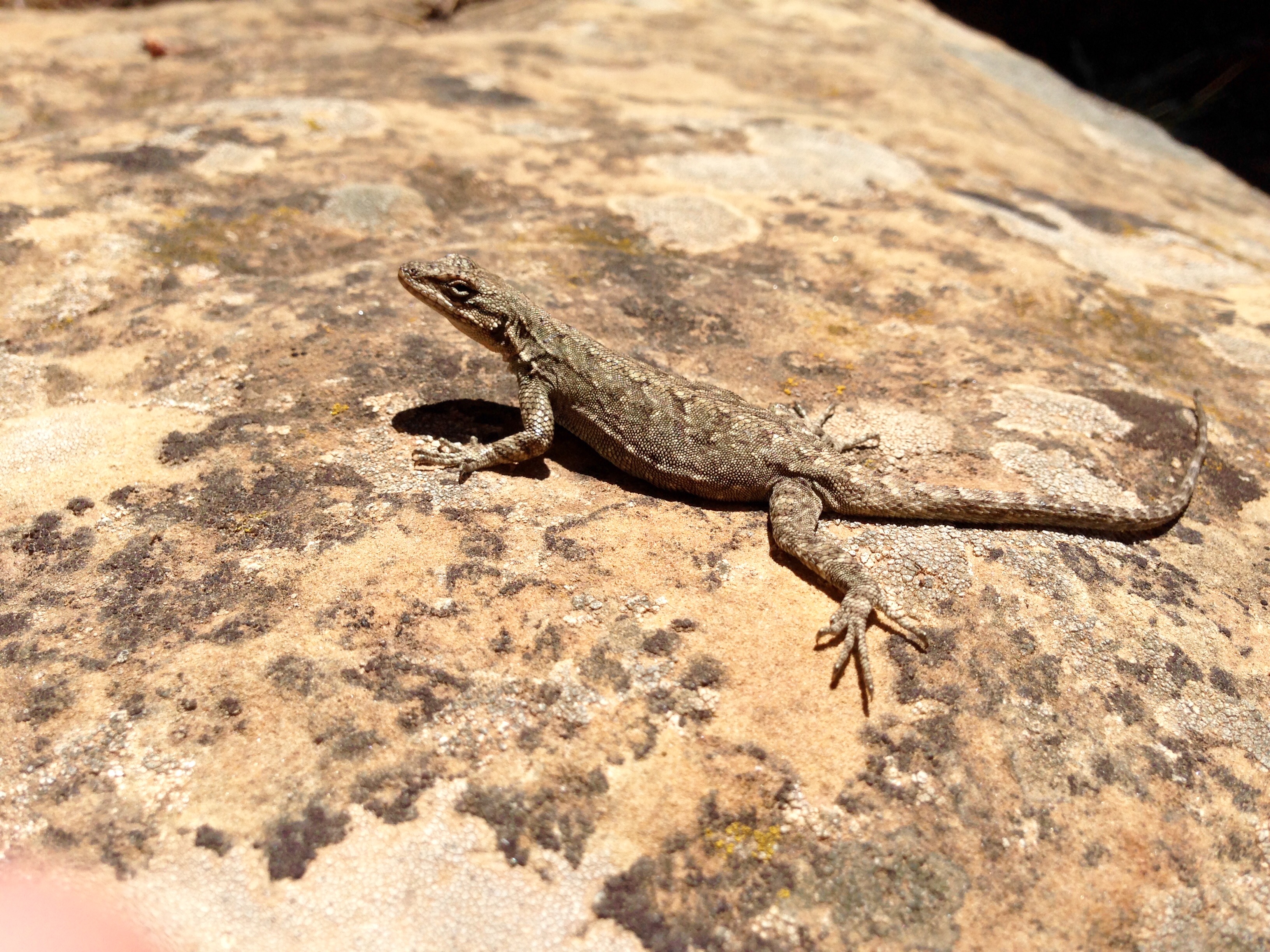 It was only about 1:30pm and our next tour of Balcony House didn’t start until 5pm. Right near the Spruce Tree house is a 2.5 mile trail called “Petroglyph Trail”. So we thought we would check it out, compare the petroglyphs to the ones we saw in NM and get a little exercise. The trail took you over rocks, through tight passes, and some other rather technical situations that we were prepared for. We saw a few lizards on the trail, this one we nicknamed “Thin Lizzy”.