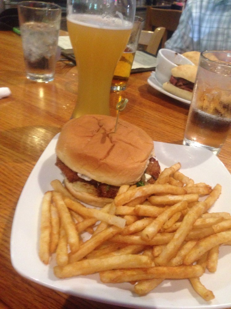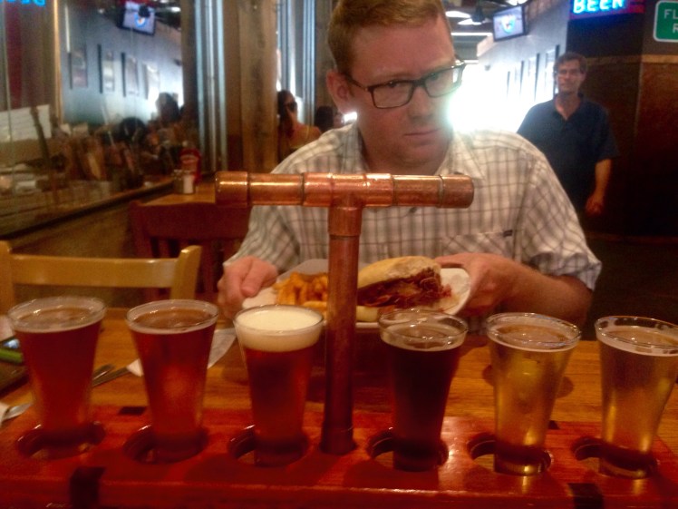 We settled on Steamworks Brewery for lunch. This place was awesome with some great beer and food. John got the French dip which was brisket and bacon, and the sampler. Danielle got a Quinoa Burger, #america.