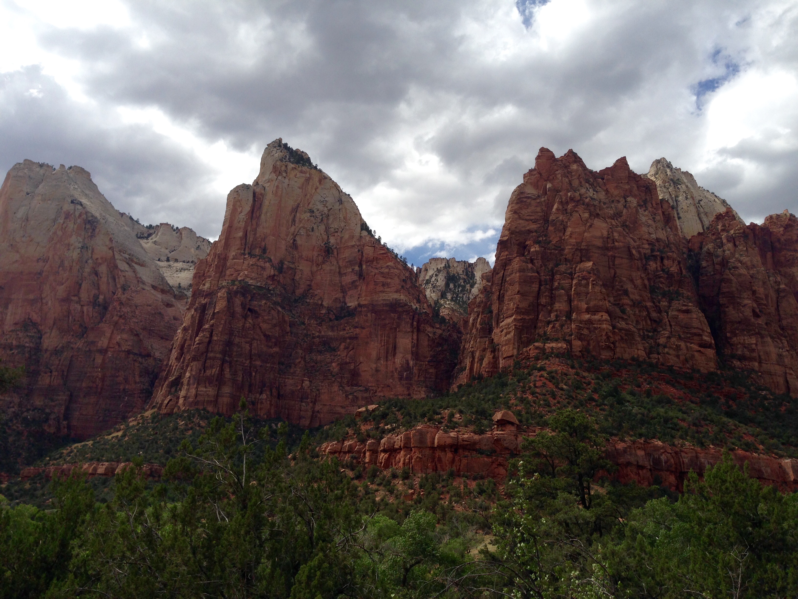 After lunch we were stuffed and our legs were tired. We got back on the shuttle and got off at just a few stops to see more of the park. One the most iconic views is of “Court of the Patriarchs”, 3 cliffs named after Abraham, Isaac, and Jacob.