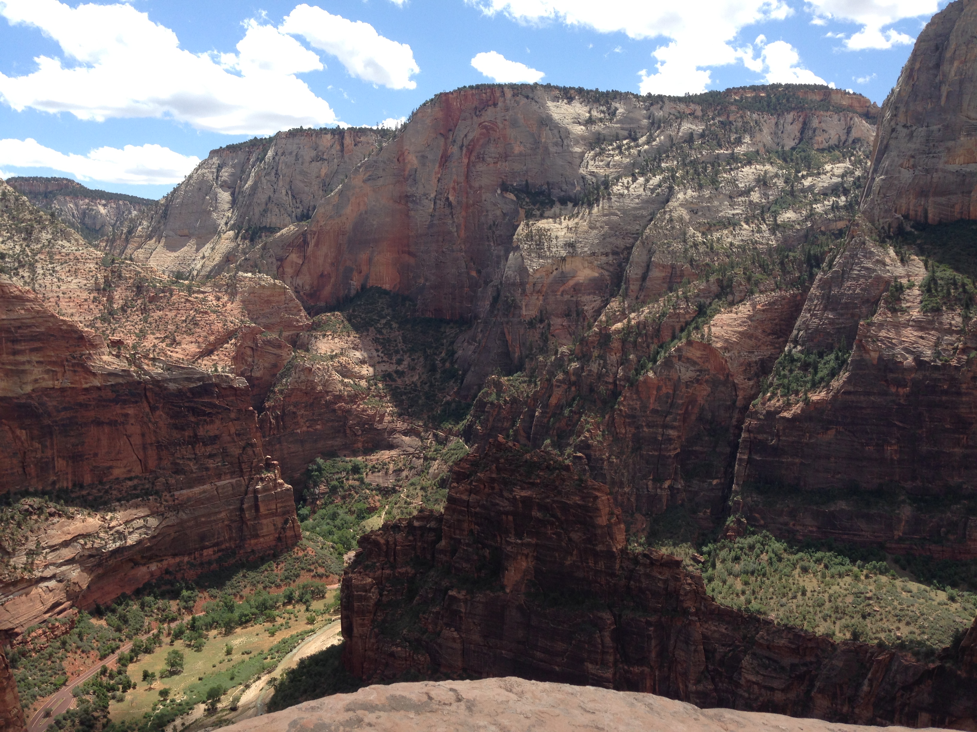 I’m not entirely sure I am explaining how nerve-racking this hike was. There were 1000 ft drops off the side of the cliff. The elevation gain over the entire hike is something like 1400 ft. There were multiple signs that warned you that people have died doing this. This is the closest thing we will ever get to Everest. If you are interested you can read more about Angels Landing from more experienced people here and here. I still can’t believe we did that. Nothing I read in the National park book I bought, or the short conversation with the park ranger, prepared us. But again, you get an awesome view of Zion’s Canyon when you are done, if you have enough nerve to get your camera out. I took one quick picture and then realized oh great we have to climb down now!