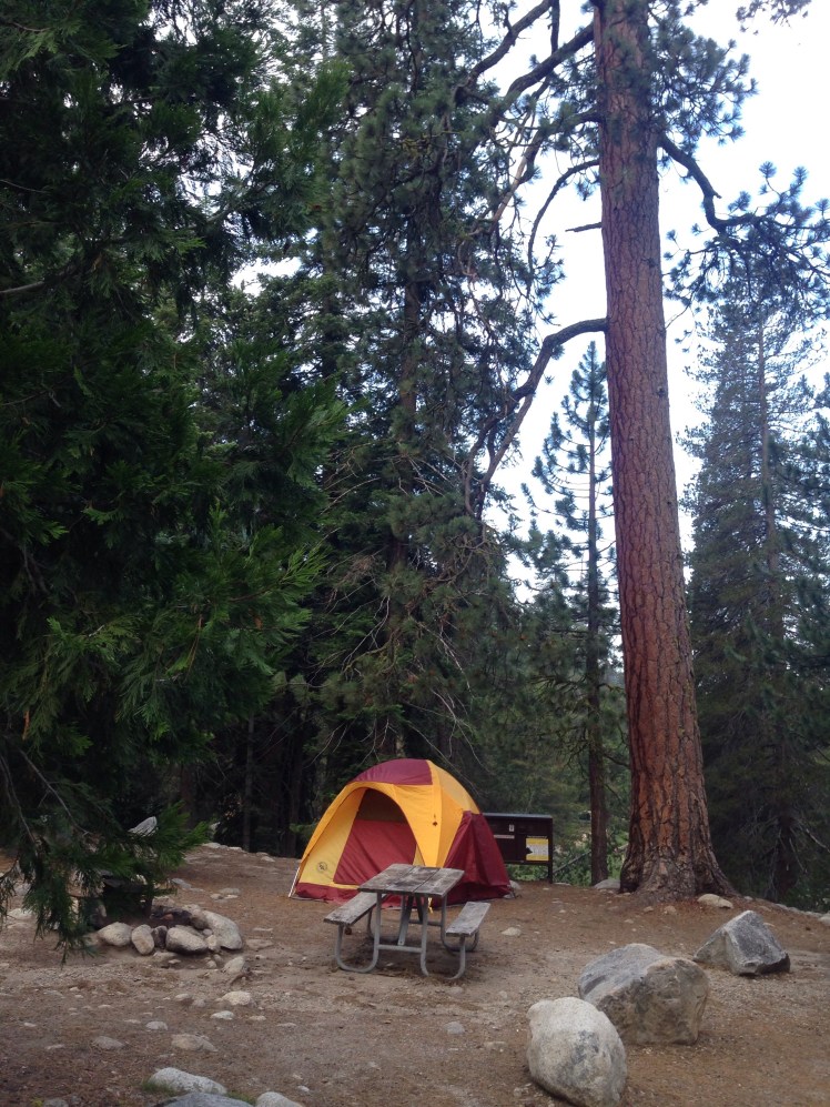Finally we reached Seqouia National Park. We had reservations at Lodgepole campground and so glad that we did and had nothing to hassle with. However, the roads into Sequoia are the most twisted and narrow curved roads we have driven on yet. We basically ate dinner, put the tent up, didn’t bother to even put tent stakes in it, and went to bed. We were planing to explore Seqouia the next day.