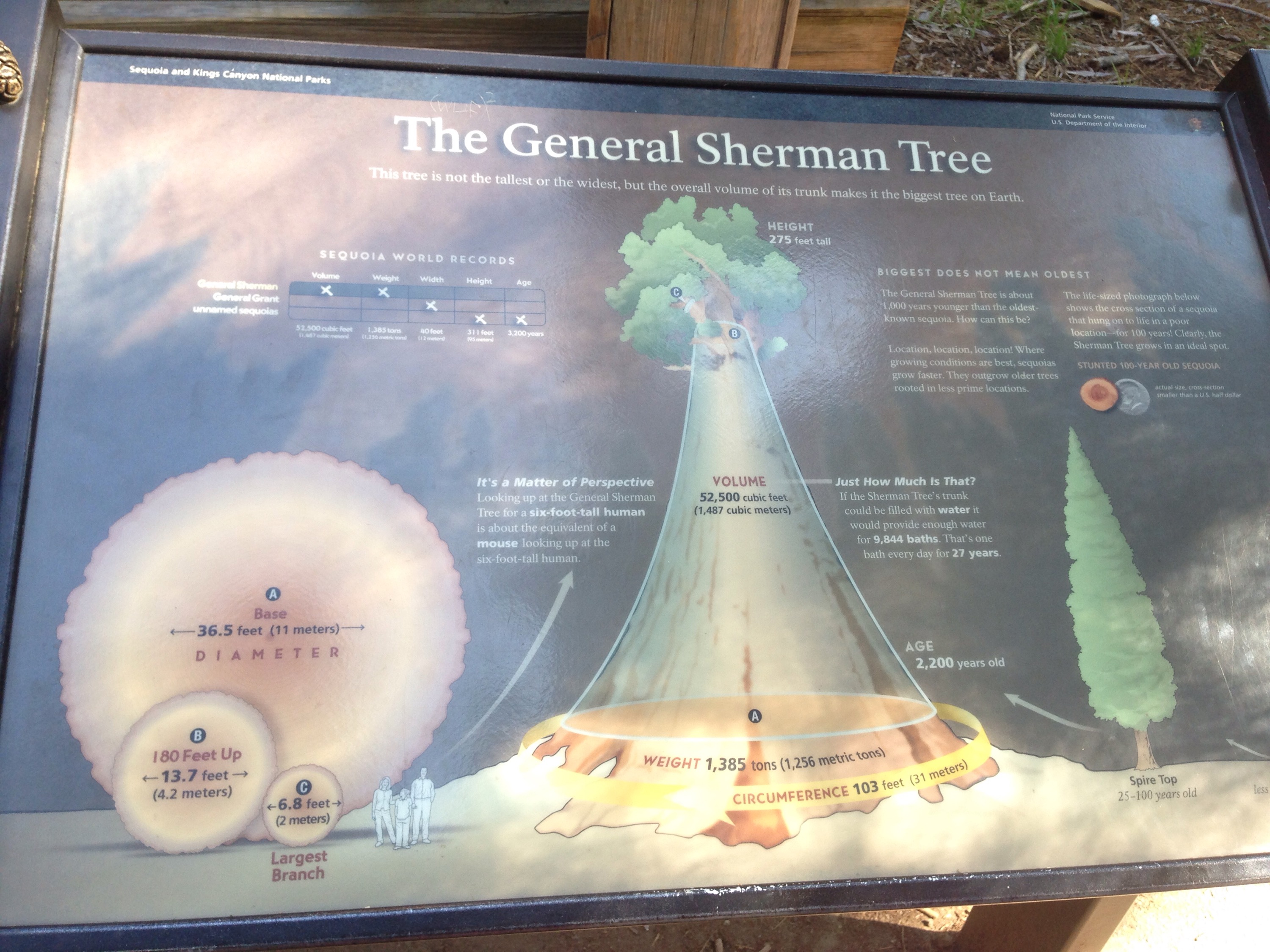 The first thing we did Tuesday was drive through the Giant Forest. It was close to our campground and a pretty drive. We then parked and walked down to the General Sherman tree, the biggest Seqouia there is, and walked around the path a little bit. The tree was more massive than either of us imagined.