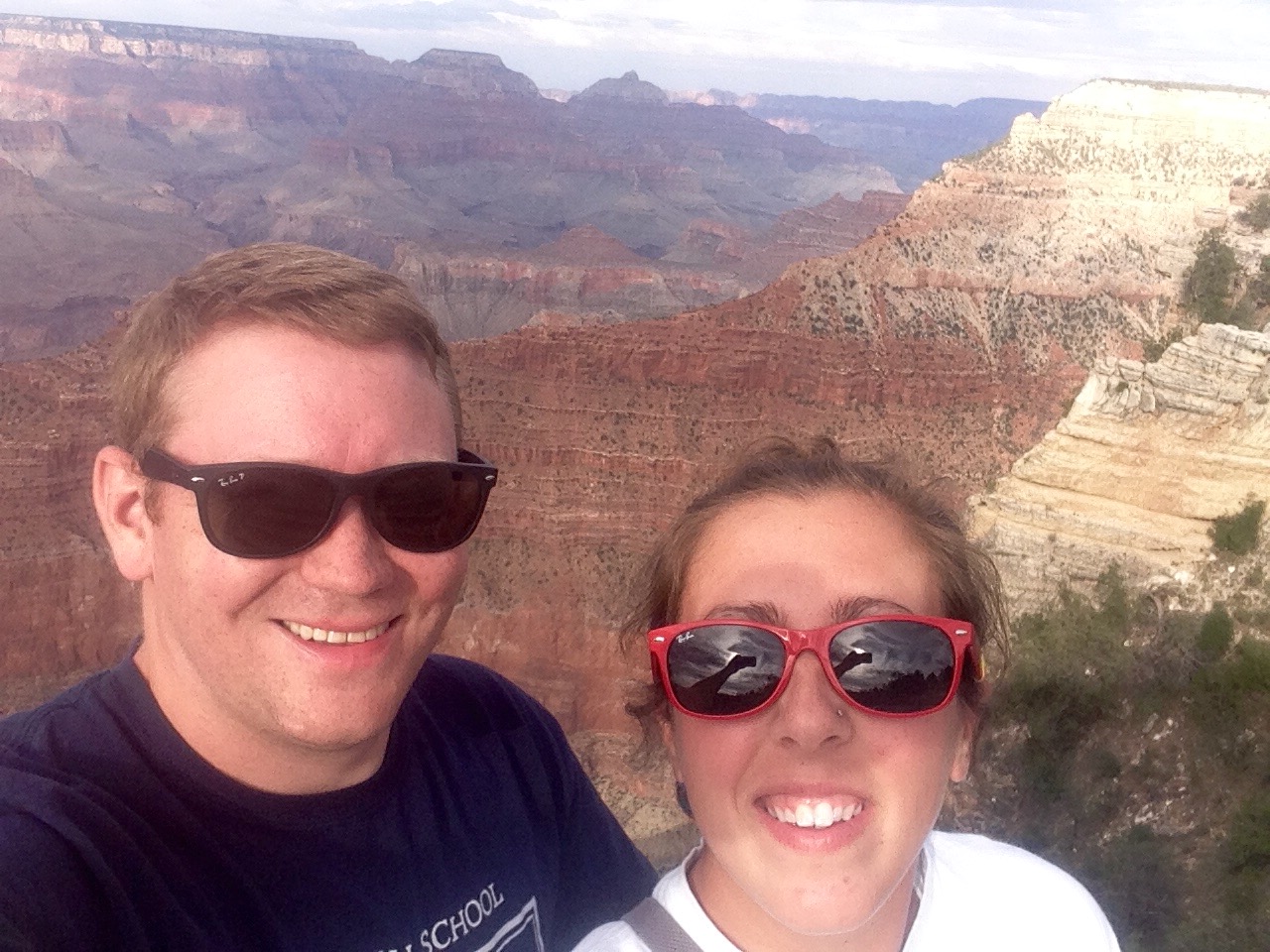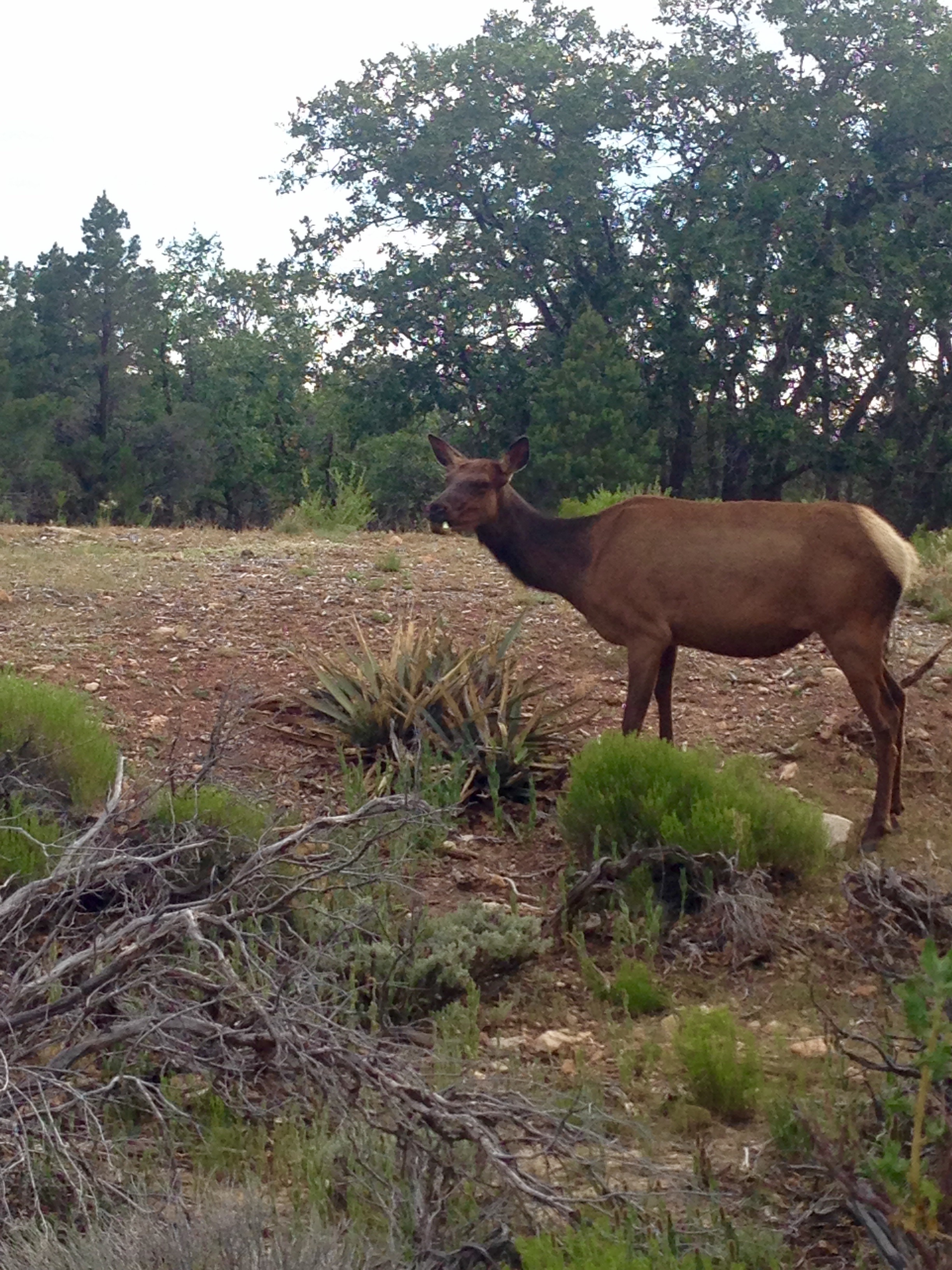 After about an hour at the Dam we had a pretty long drove into Arizona to get to the Grand Canyon. Once we got there we went straight to Mather Point, the main “lookout” point for the Grand Canyon. We saw a bunch of female elk and one came up really close to all of the park visitors on the sidewalk by Mather Point.