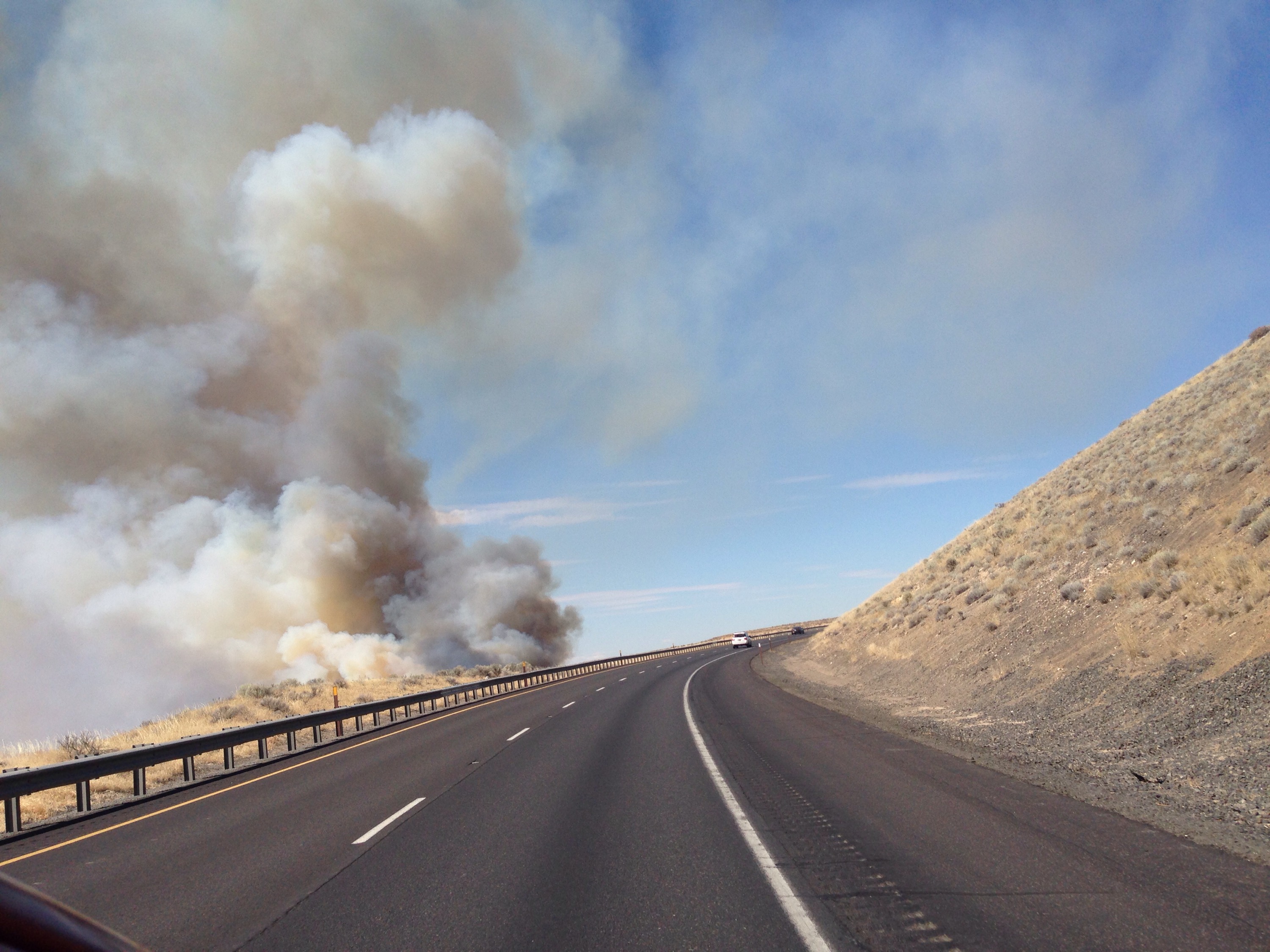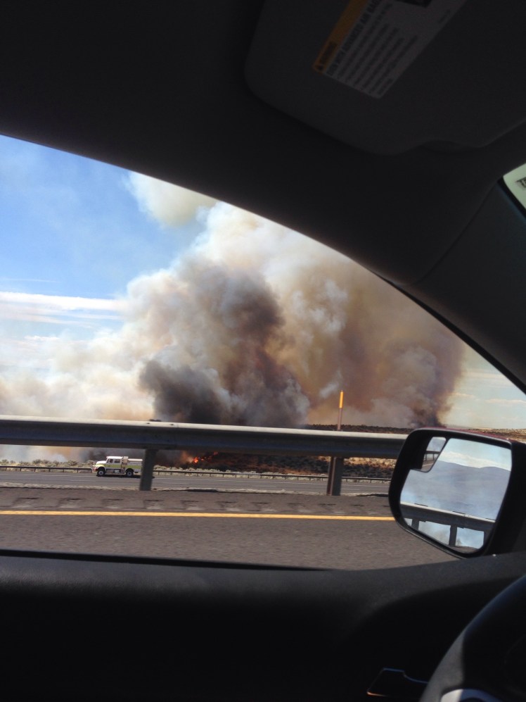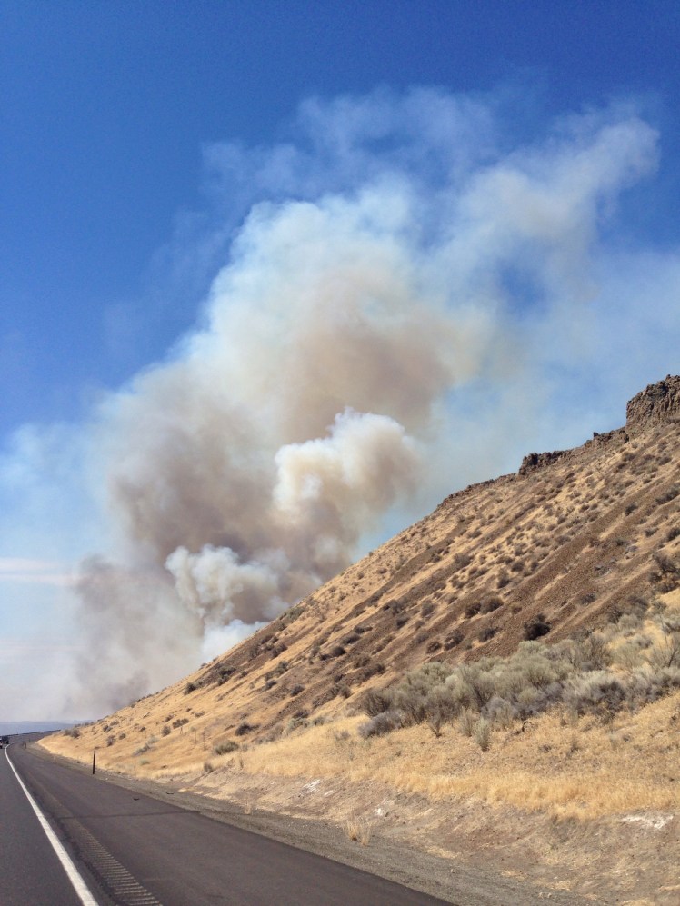 For example as we were driving across Washington there was a grass fire. You could see the wall of smoke from a few miles away and we ended up driving right past it.