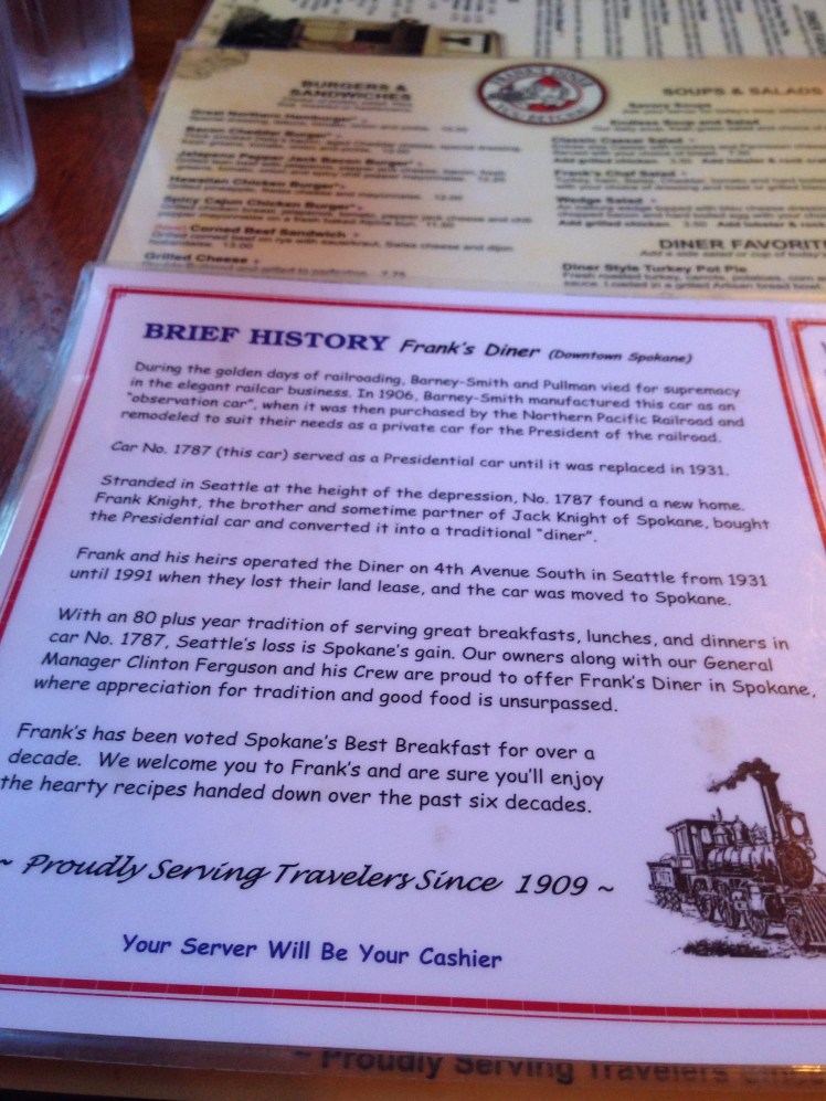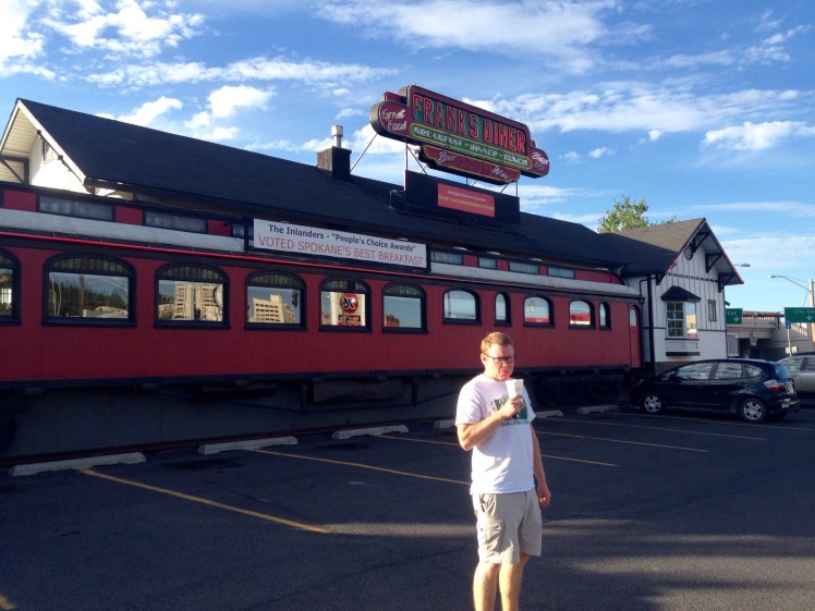 Later Sunday we arrived in Spokane. We had dinner at a place in town called Franks Diner. The cool thing is, the restaurant is inside an old Preaidental Rail Car. They cook the food right on the grill behind the bar. It’s apparently the best breakfast place in Spokane, we got dinner type food (turkey club and Chicken fried steak) and it was deliscious. Plus they make their own milkshakes.