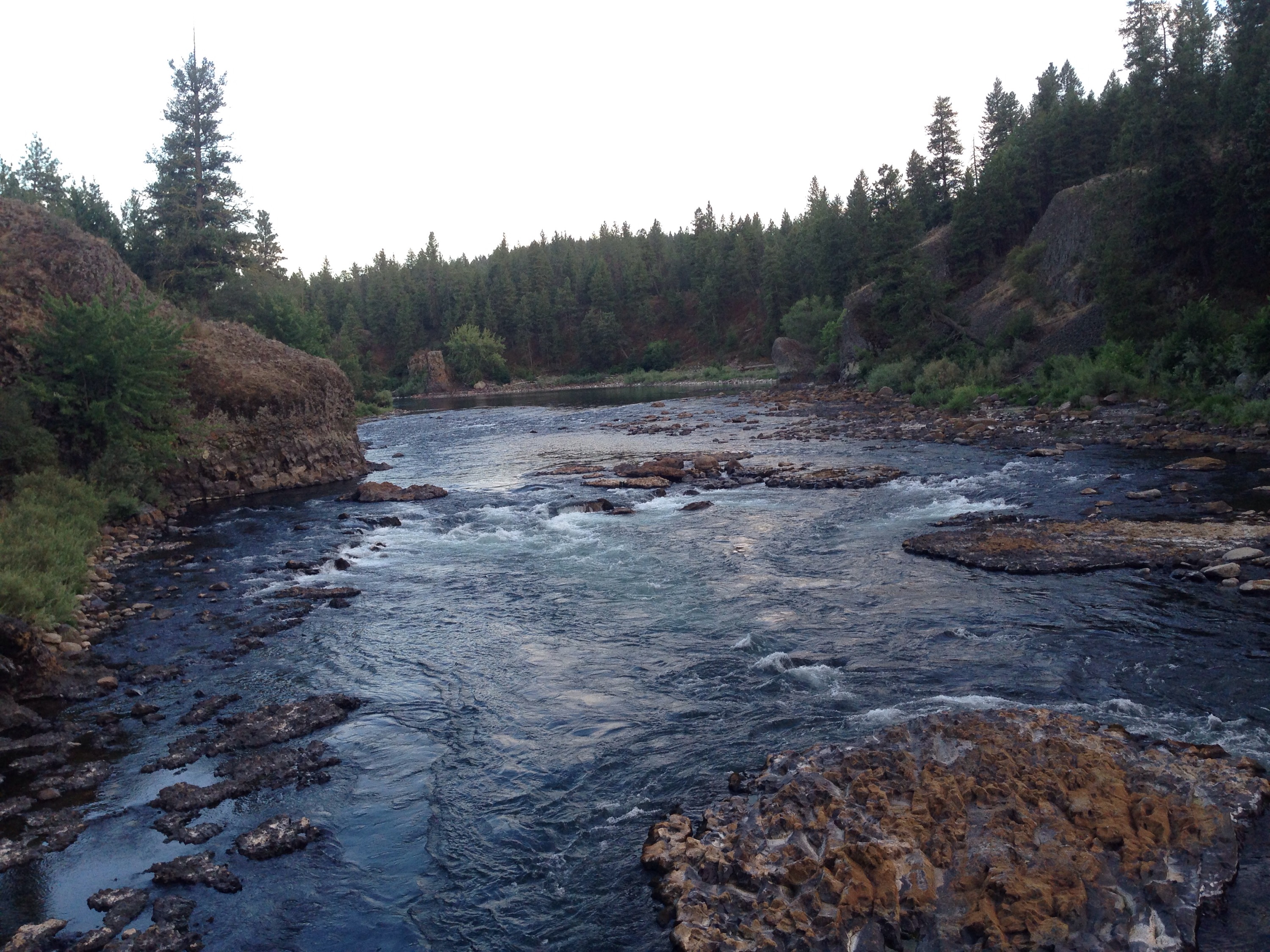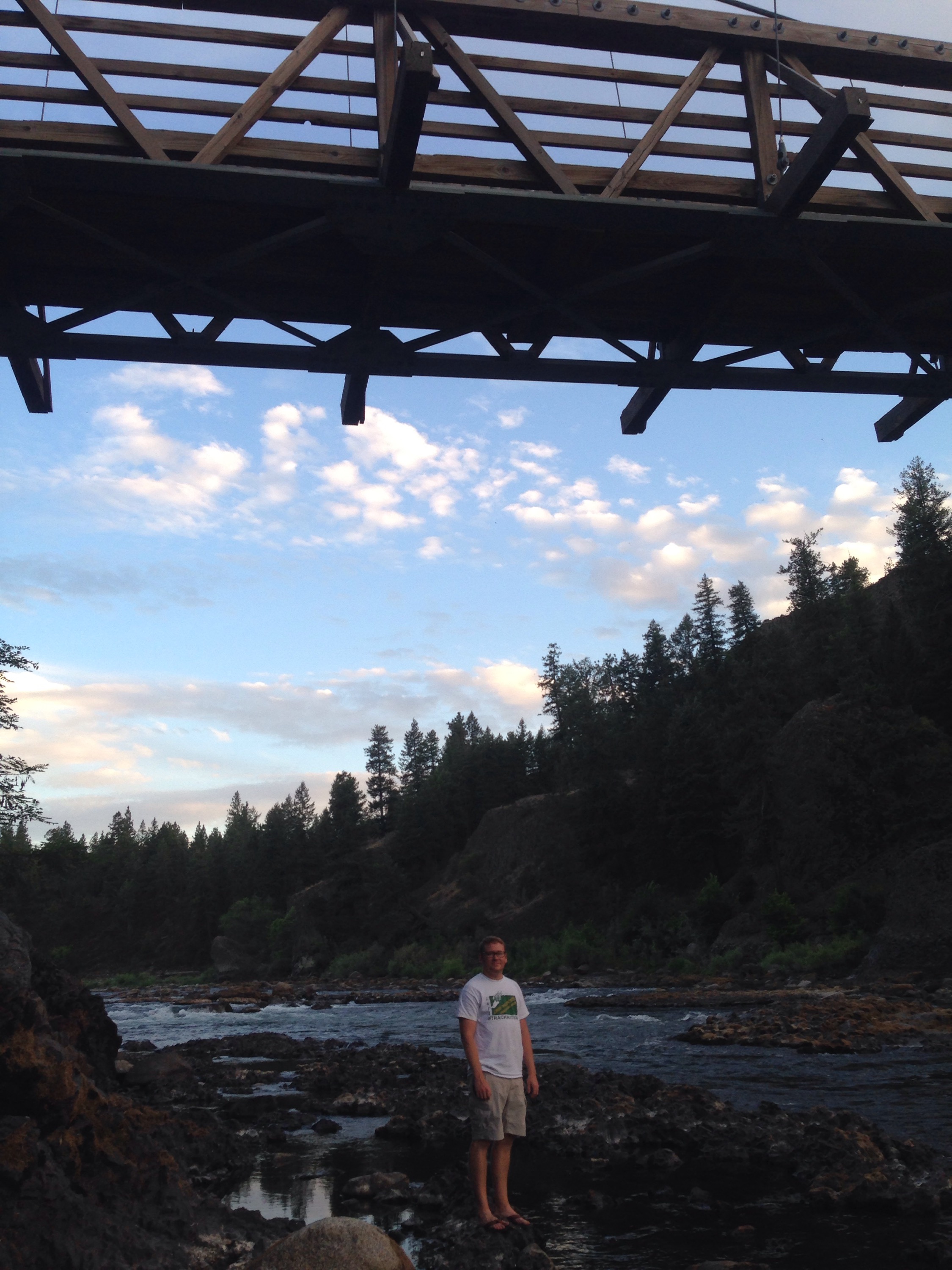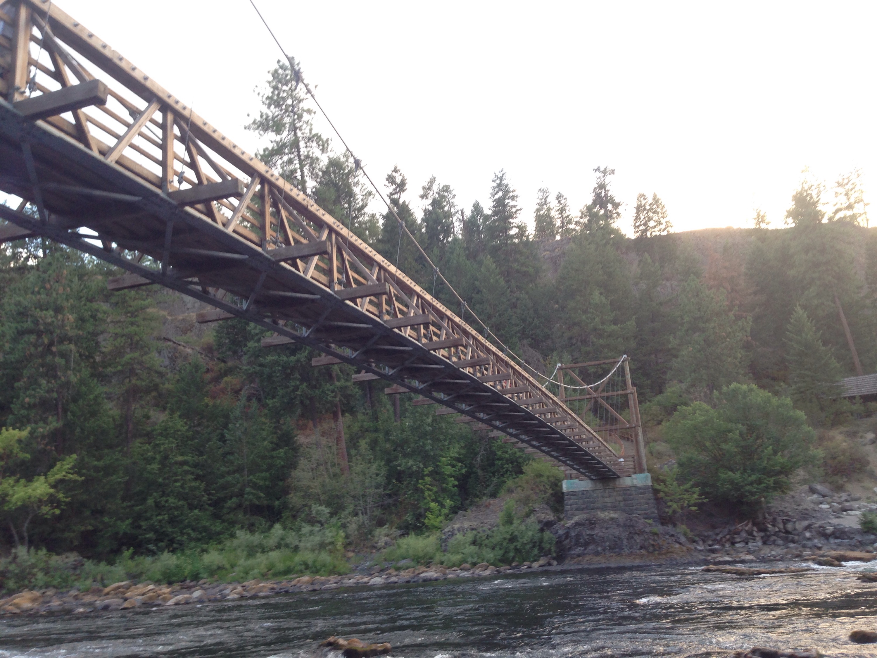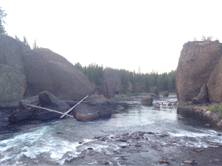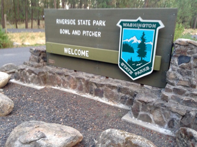 We camped at Riverside state park. It was nice and not far from downtown. We couldn’t have a fire due to the high risk. So we set up the tent and walked around for a bit. There is a “swinging bridge” here built by the CCC over the river. The park is also know as “Bowl and Pitcher” because there are rock formations that look like both in the river.