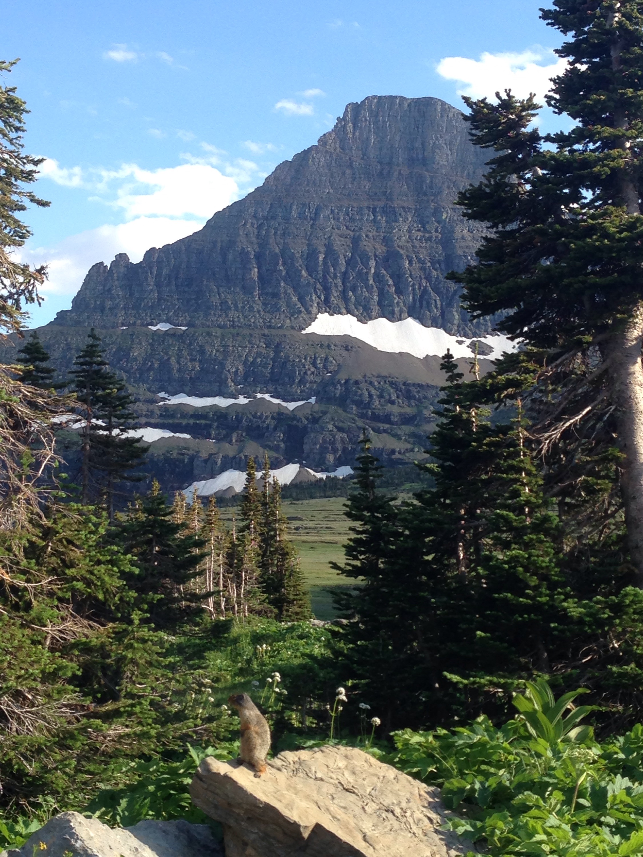 Our longest stop was at the Logan Pass Visitor Center where we got out to hike to hidden lake. You get to walk away from the road and around to the base of some of the mountains. We were really hoping to see some goats. But instead we saw a lot of marmots, streams from snow melt, and glaciers. It was awesome even still.