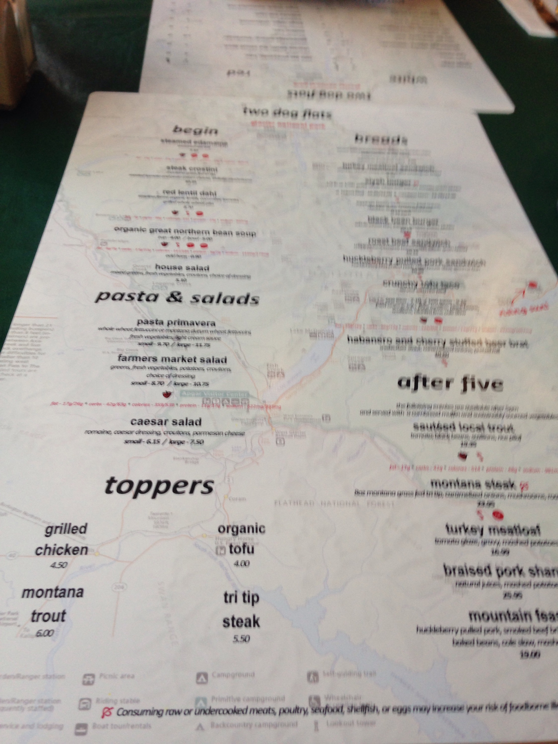 The scenery changed to being absolutely beautiful. We had a few hours drive to Glacier National Park so we got to see some of the best of North West Montana. Again, it was amazing. So far this has been our favorite state with even the most “boring” drive has beautiful scenery. We stopped for lunch at one of the many Casino/Gift Shop/Restaurant locations that caters to travelers and western enthusiasts. It is to be noted that there is huckleberry everything around here. Pie, salad dressing, lotion, Chapstick, chocolate. If you name it, it comes in huckleberry flavor or scent. “Huck” pie was on the menu everywhere so we had to try it. It was great!