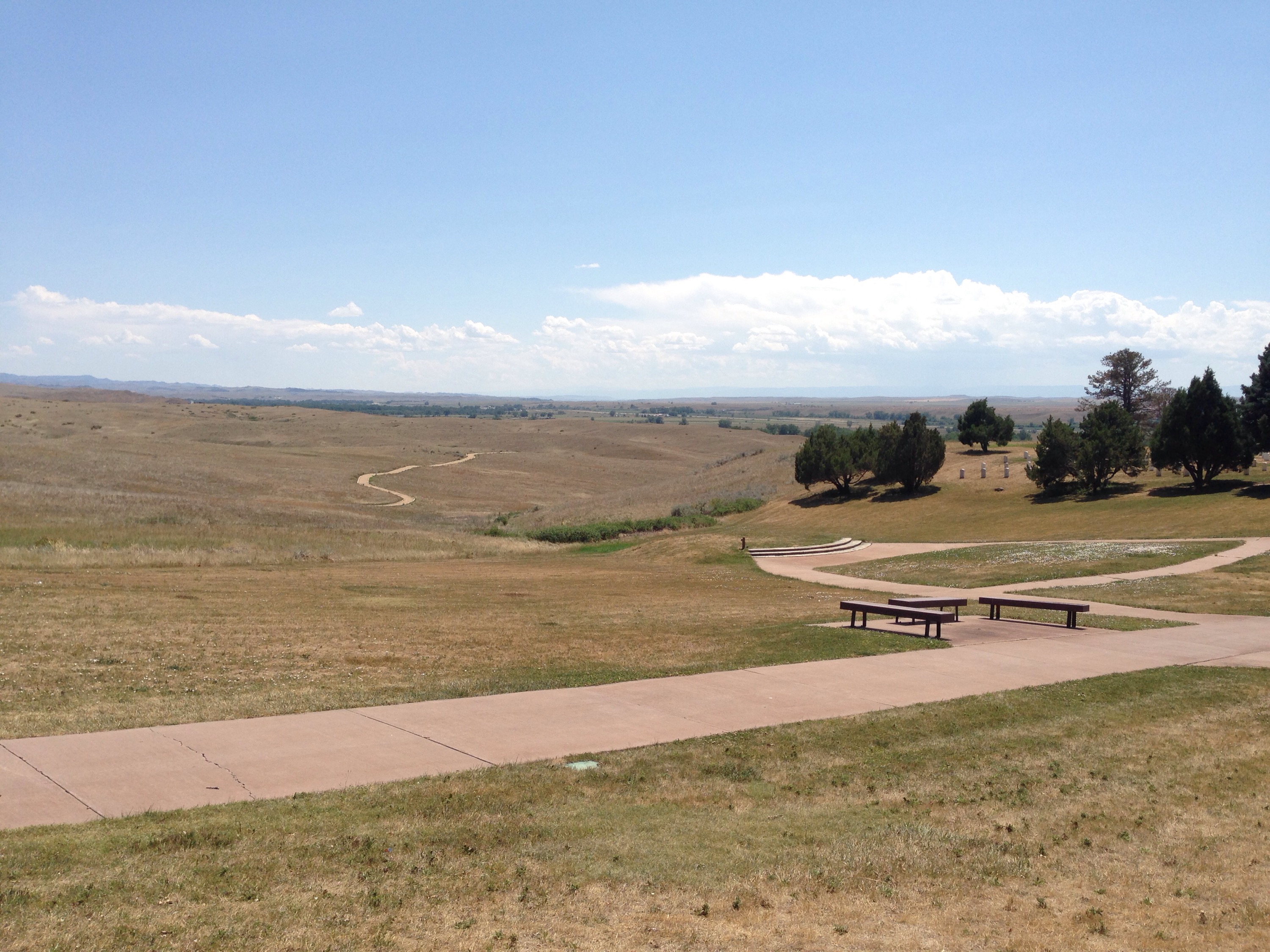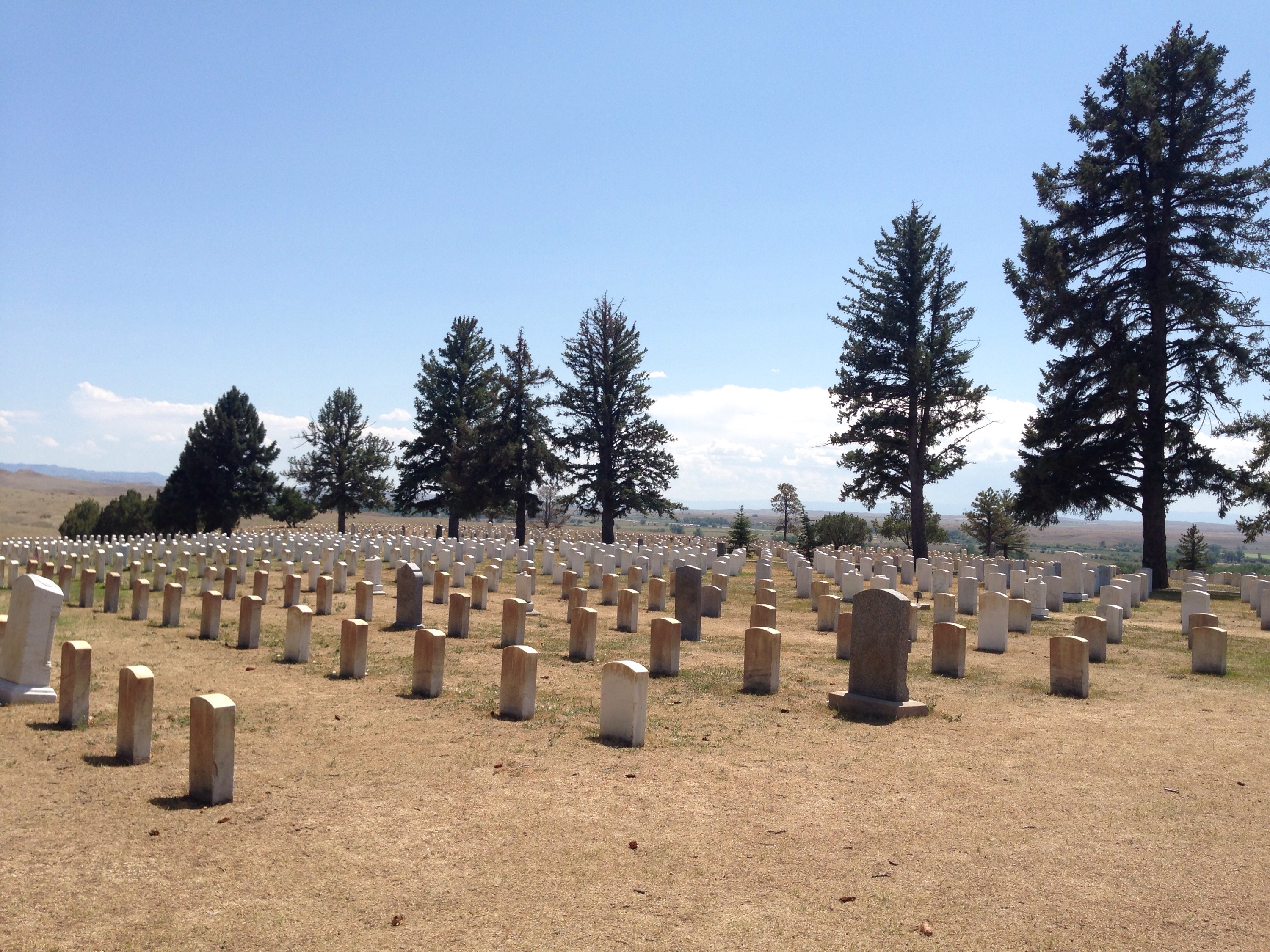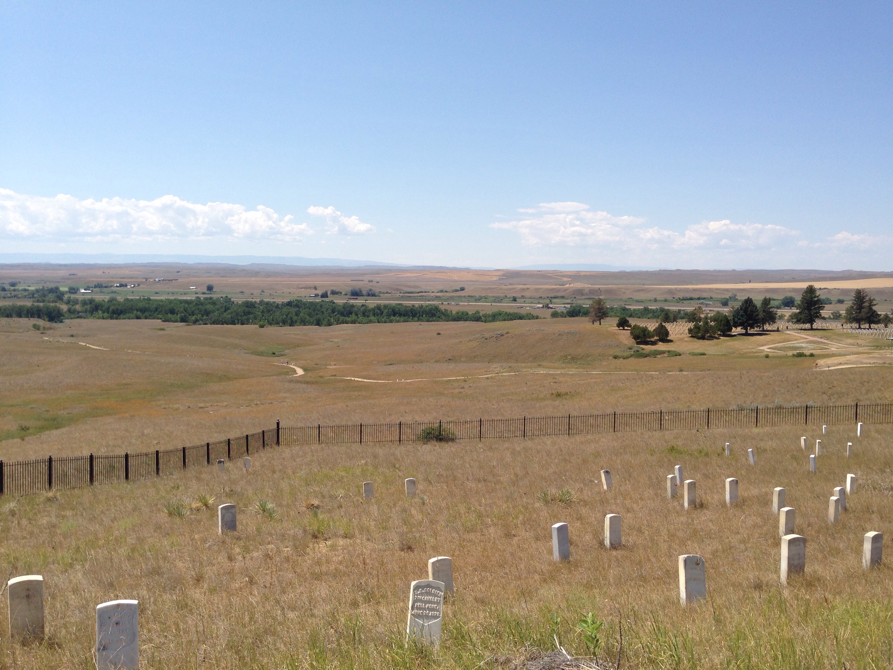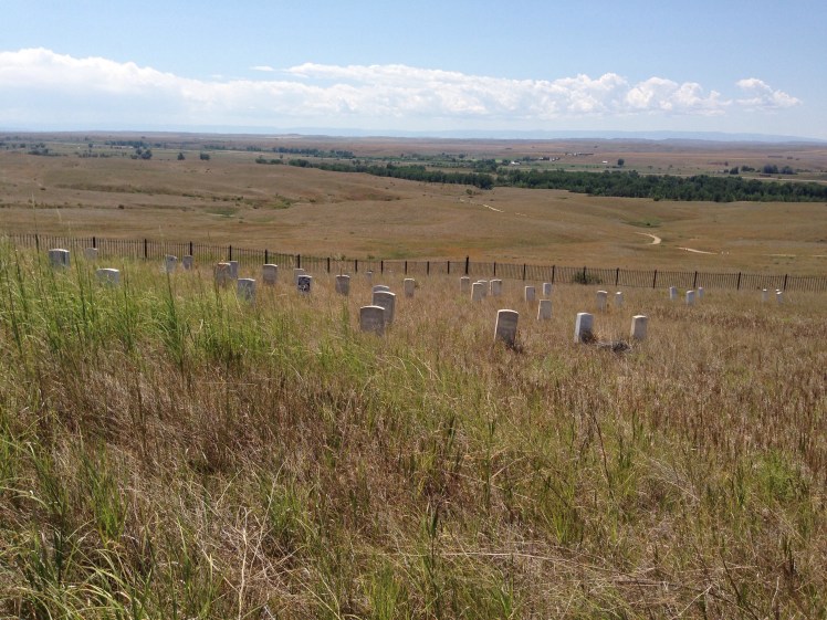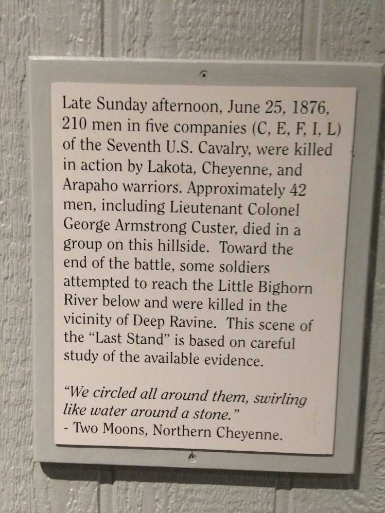 The best thing about leaving Yellowstone is that the drive is still amazing. No matter what direction you head, there is a great view along the way. We left through the East Entrance into Cody, WY to head across Wyoming and back into Montana. It was about a 3.5 hour drive to get to the Little Big Horn Battlefield, the site of “Custer’s Last Stand”. We went to the Visitor Center first where they have a little exhibit about the battle, as well as some artifacts/uniforms from the military at that time as well as Indian artifacts. They also show a great movie that details the battle.