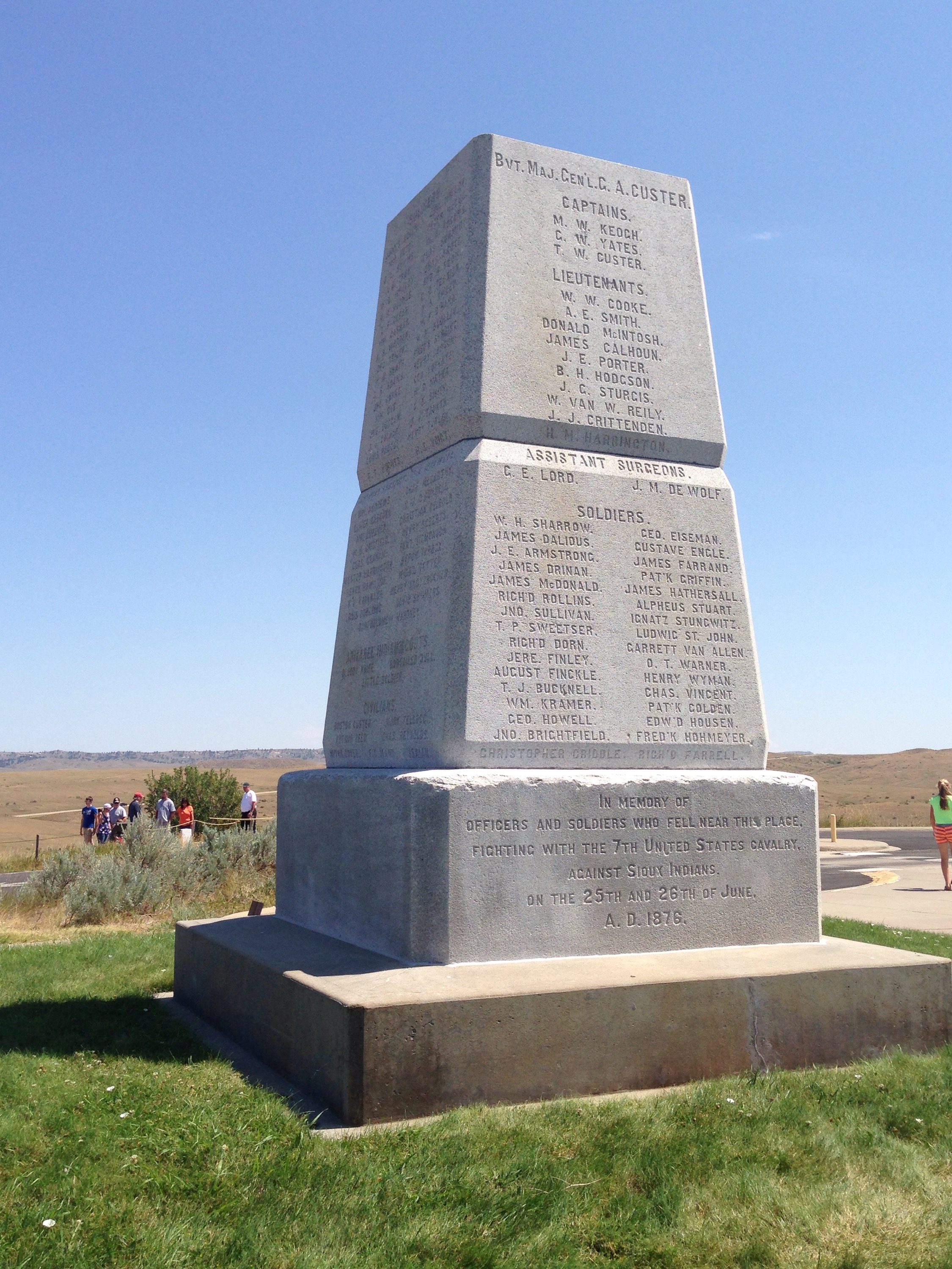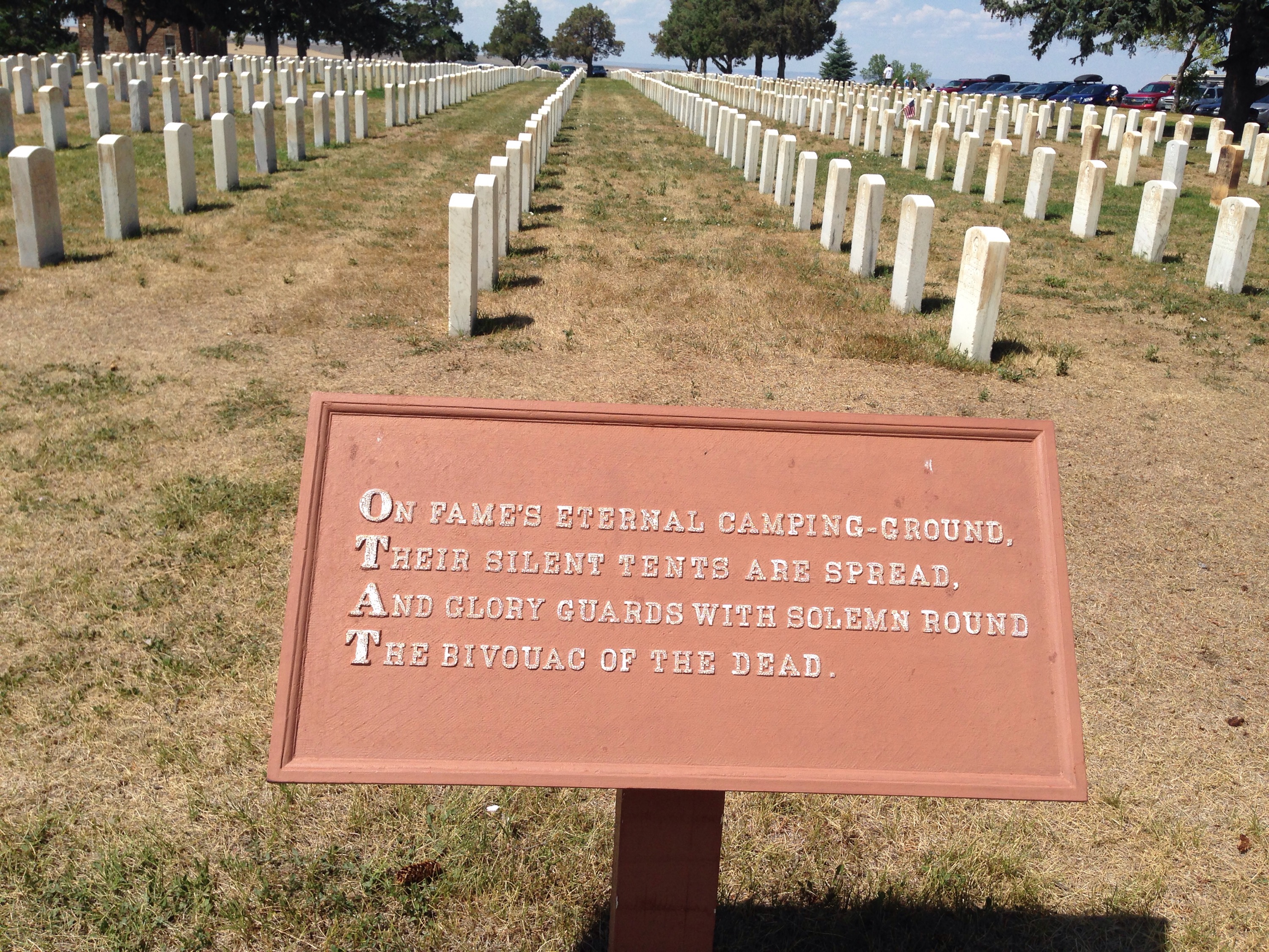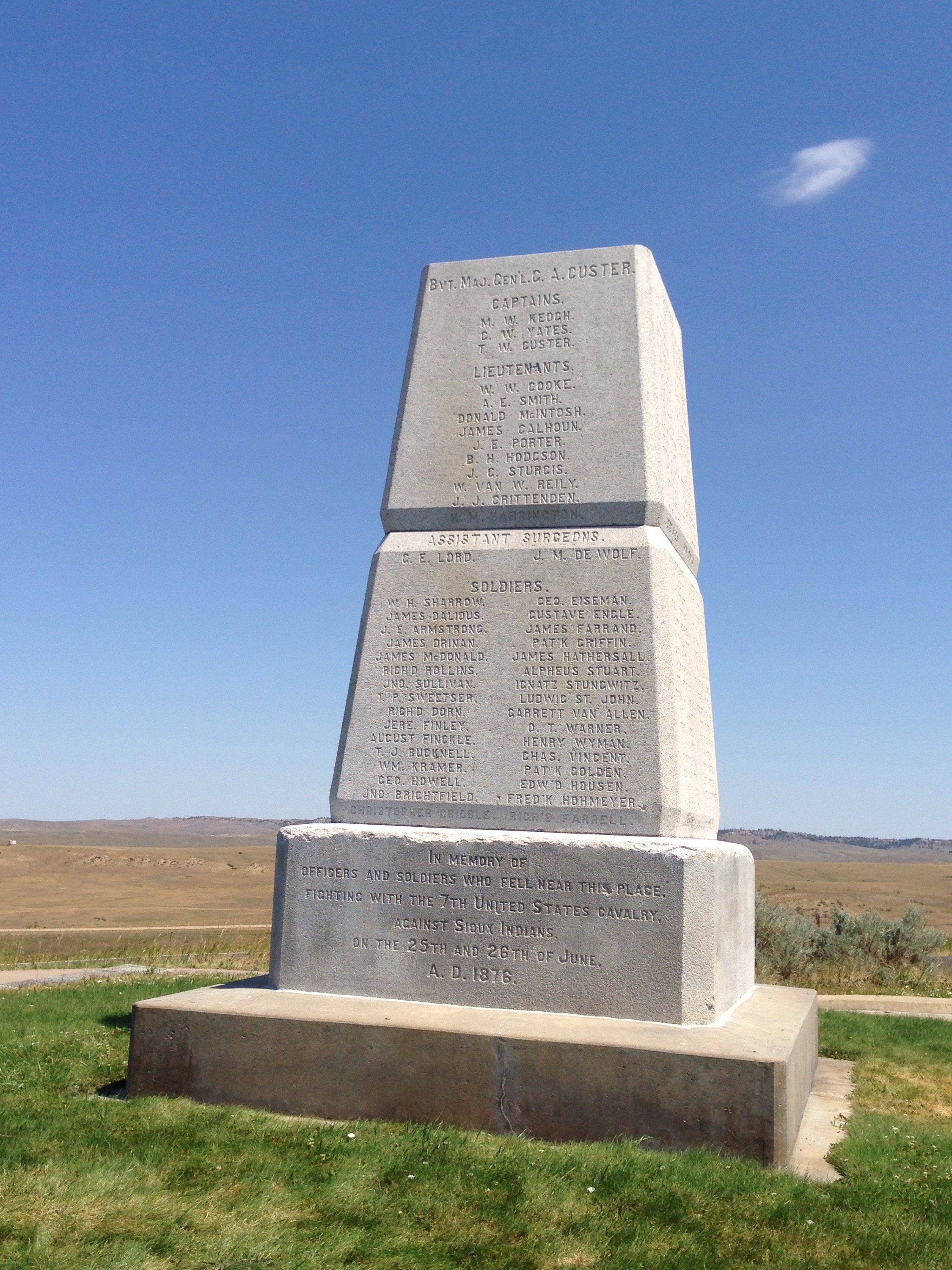 The best thing about leaving Yellowstone is that the drive is still amazing. No matter what direction you head, there is a great view along the way. We left through the East Entrance into Cody, WY to head across Wyoming and back into Montana. It was about a 3.5 hour drive to get to the Little Big Horn Battlefield, the site of “Custer’s Last Stand”. We went to the Visitor Center first where they have a little exhibit about the battle, as well as some artifacts/uniforms from the military at that time as well as Indian artifacts. They also show a great movie that details the battle.