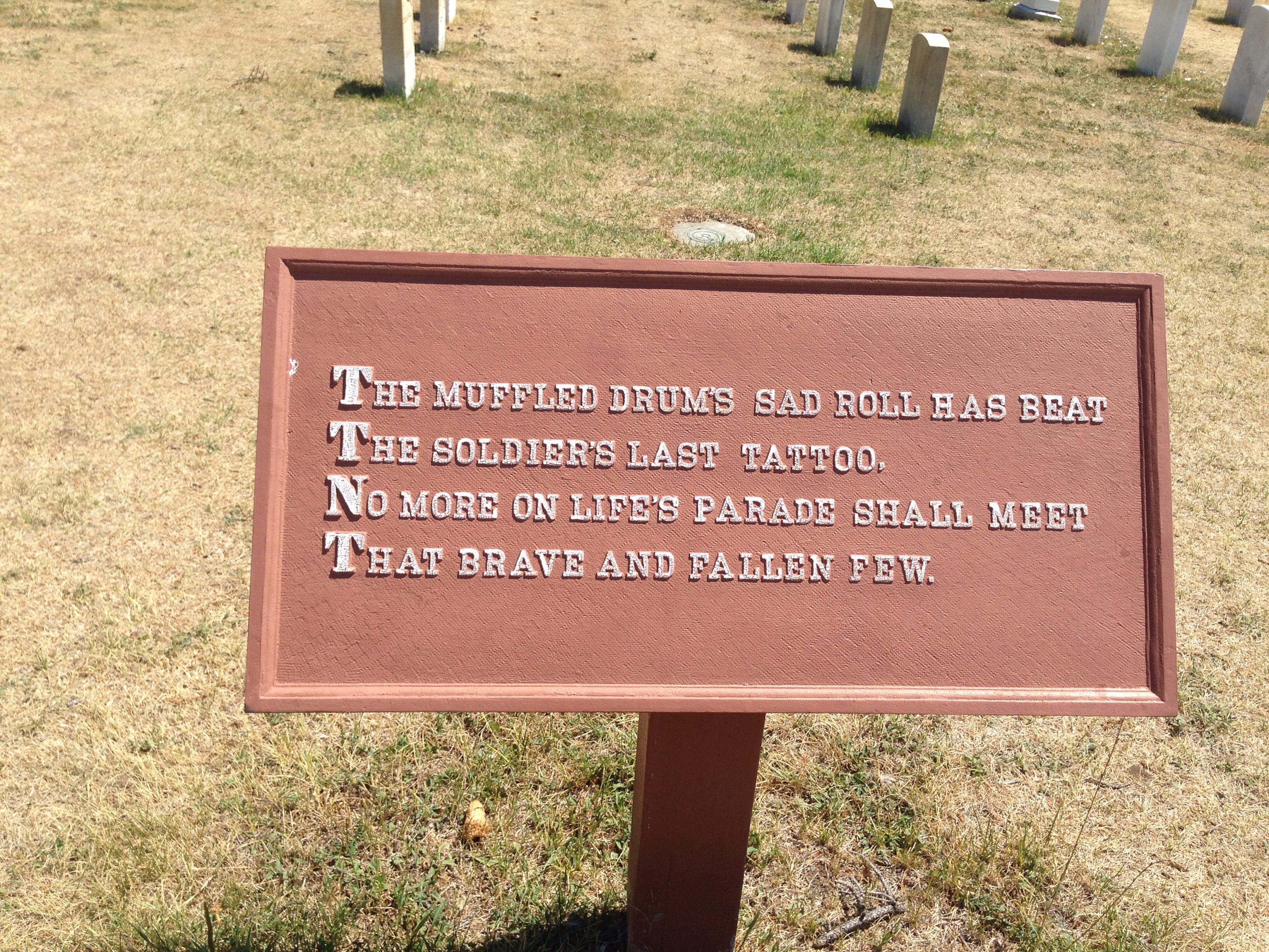 We went outside to “Last Stand Hill” where this is the site of the last and final stand of Custer and many of his men. There is a memorial there, as well as a cemetery that notes where the men “fell” in battle. You can also see the crest of the hill from which Crazy Horse and the other unified Indians attacked from. There are also markers around to memorialize the horses, the men were ordered in a last ditch effort to kill their horses and hide behind them as a final defense.