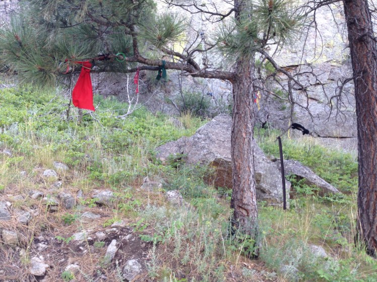You could also see some people climbing it! Which at this point is was almost 8pm so we hope they were on their way down and not up! The top of Devil’s Tower is about 1 acre total. Devil’s Tower is a sacred site to many Native Americans and as you walk around you can see some prayer flags tied to trees and other spots along the way.