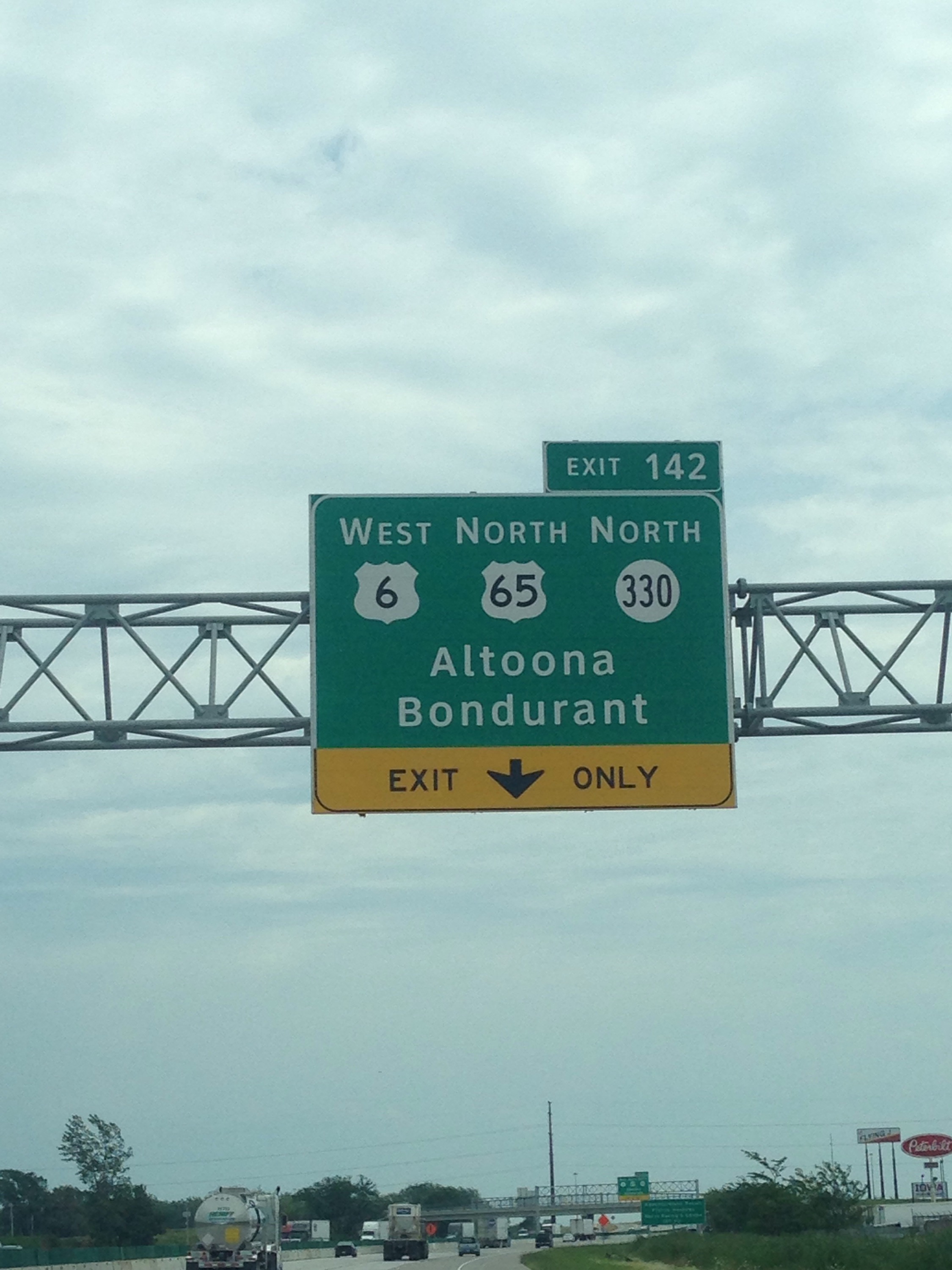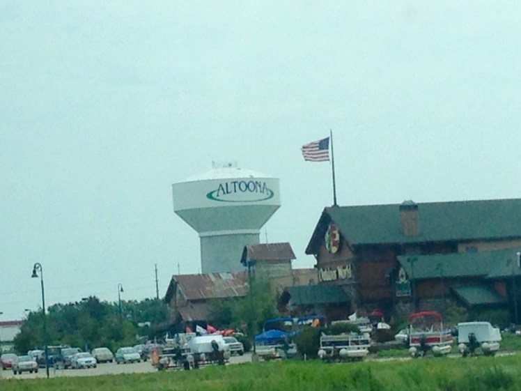 The journey across Nebraska and Iowa continued today. It was a lot of flat driving down some long roads. There was a McDonalds so we went for the atmosphere. About half way through our journey we were amazed when we saw a water tower for Altoona, IA. This was surprising since Danielle grew up in Altoona, PA! The Altoona, IA looked even smaller than Altoona, PA.