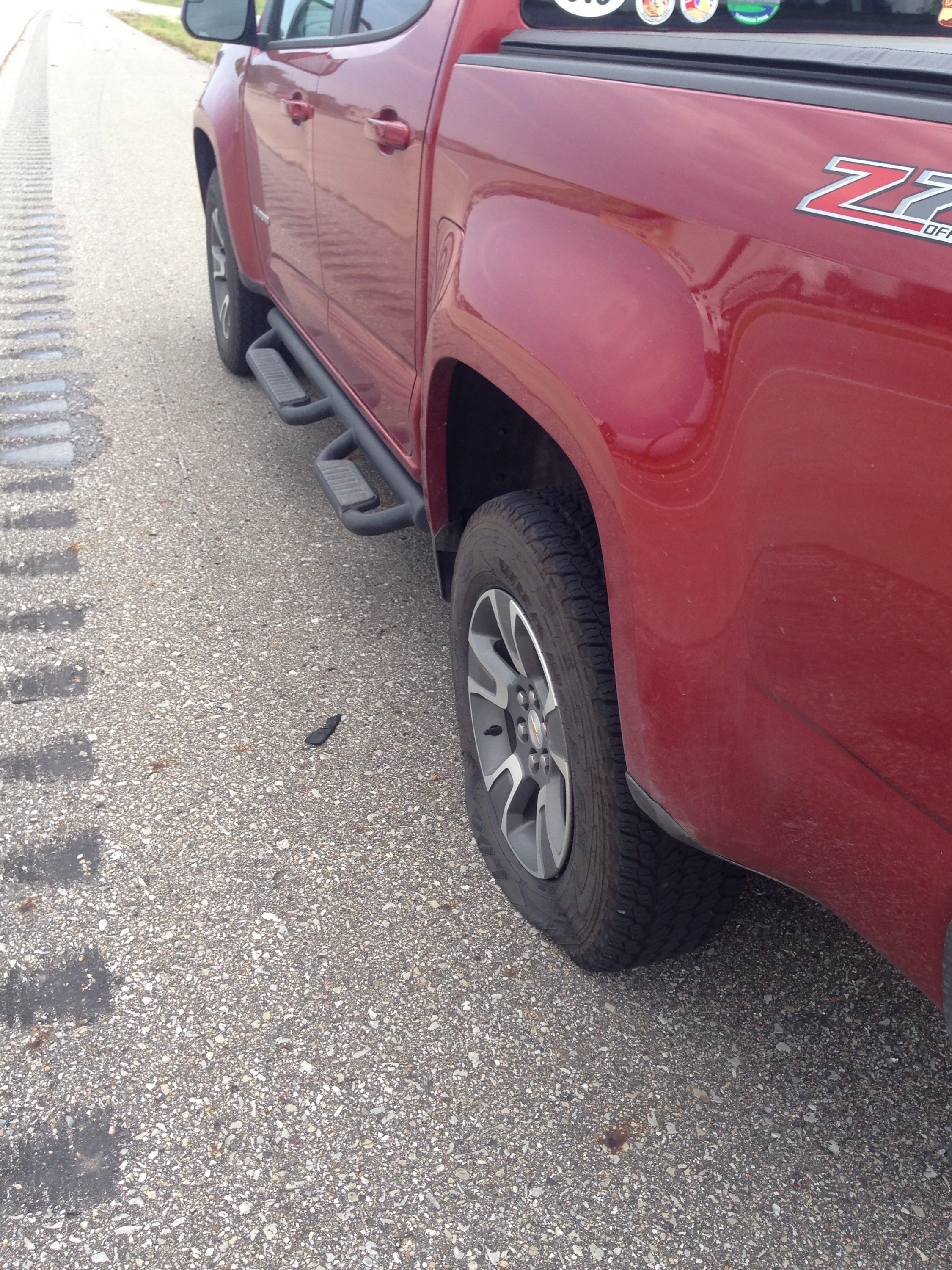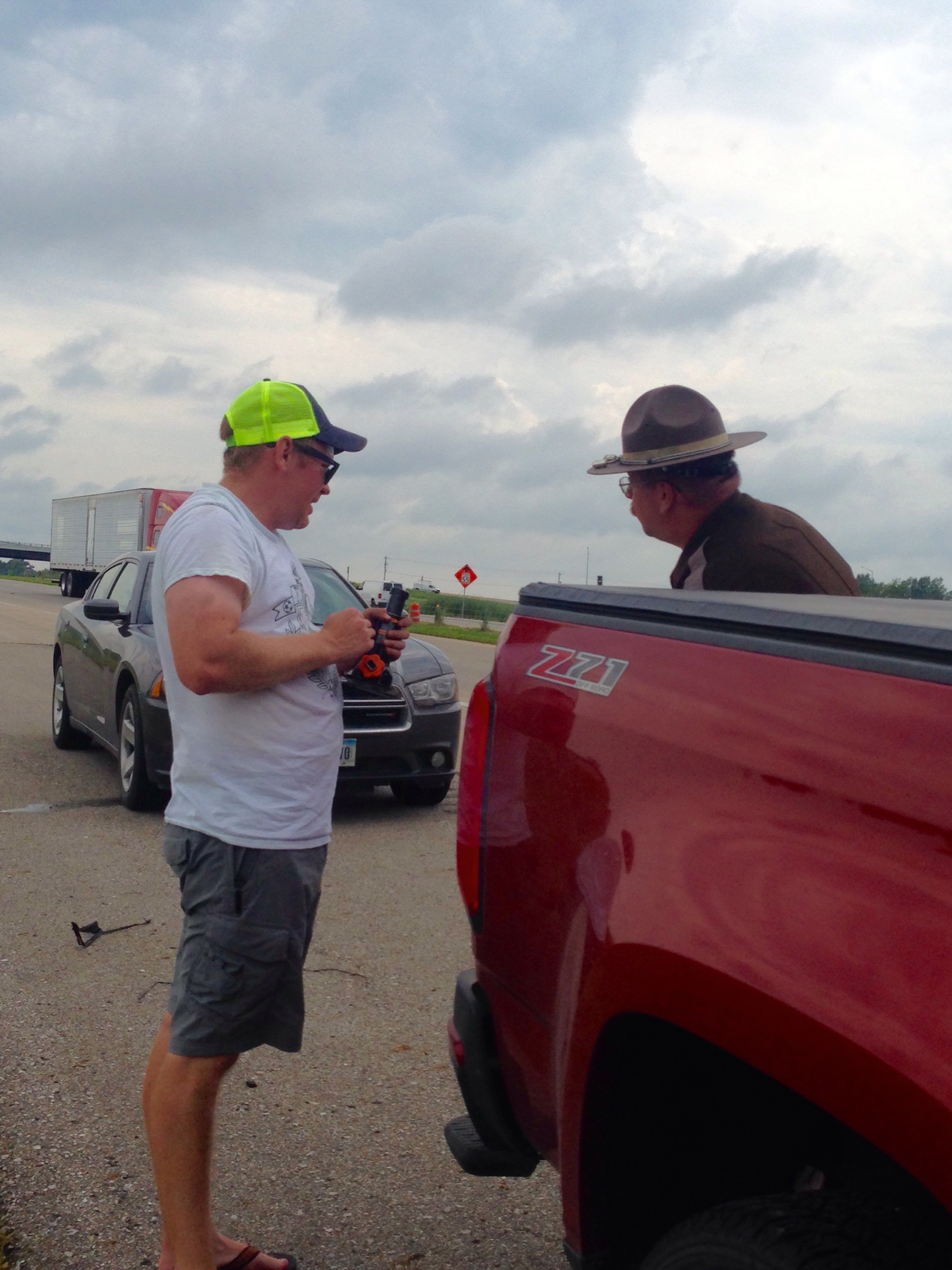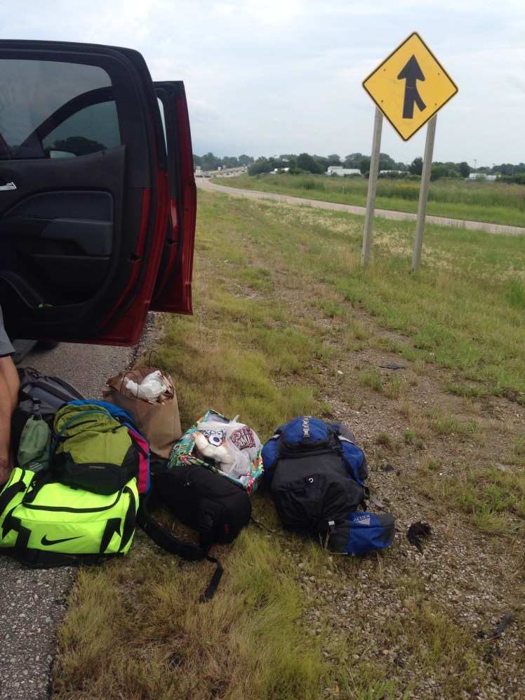 No sooner did we take pictures of the the signs for Altoona as we passed, when the truck rang an alert that the rear driver-side tire PSI was 10..then 6.. and then 0. We pulled over immediately and you could hear the air rushing out of it. We had a flat tire, and not a slow leak from a screw like last time. This was the real deal, the one we have been training for. So we called Triple A, and they said anywhere between “now” and an hour or so. We decided we would start changing it ourselves and see if we could beat triple A before they get here.