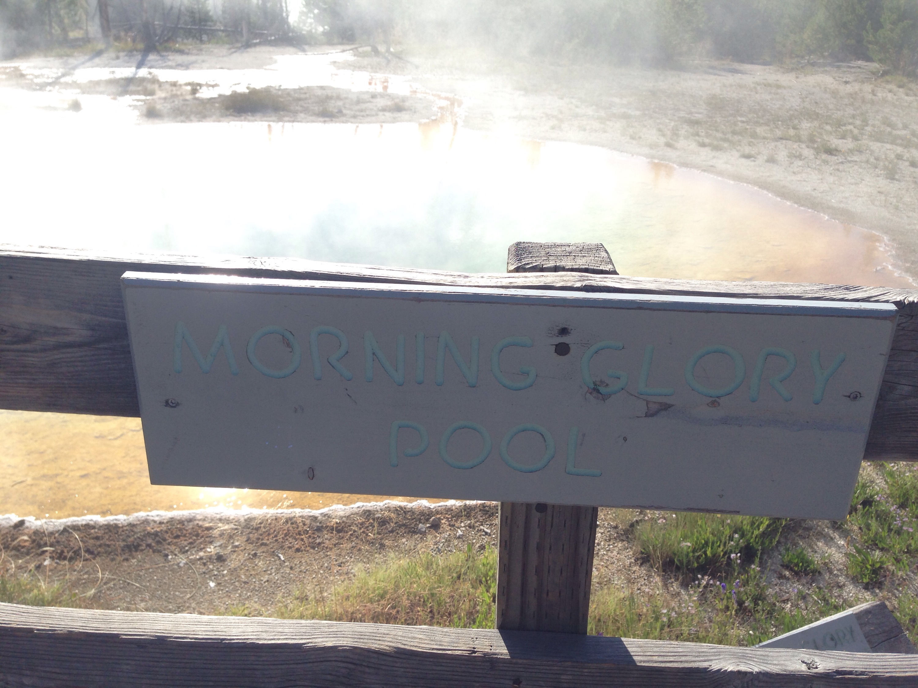 After we ate we walked the geyser trail (maybe 2.5 miles round trip) to see more hot springs and geysers in the Old Faithful area. The highlight was the Morning Glory pool at the end of the trail. Like the Grand Prismatic, it has beautiful colors. But since it was small enough you could see the entire thing and it was like looking into the center of the earth (or so I would imagine).