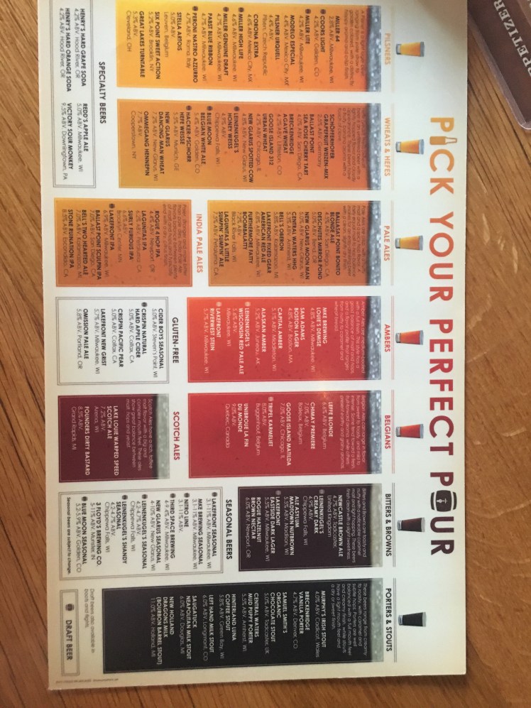 After a careful examination of the menu we saw that if you download the Milwaukee Brewing Company app, you can get a free beer! Using their free wifi, we downloaded the app, found the code and each enjoyed a beer on the house. It tasted great and the price might of made it taste even sweeter!