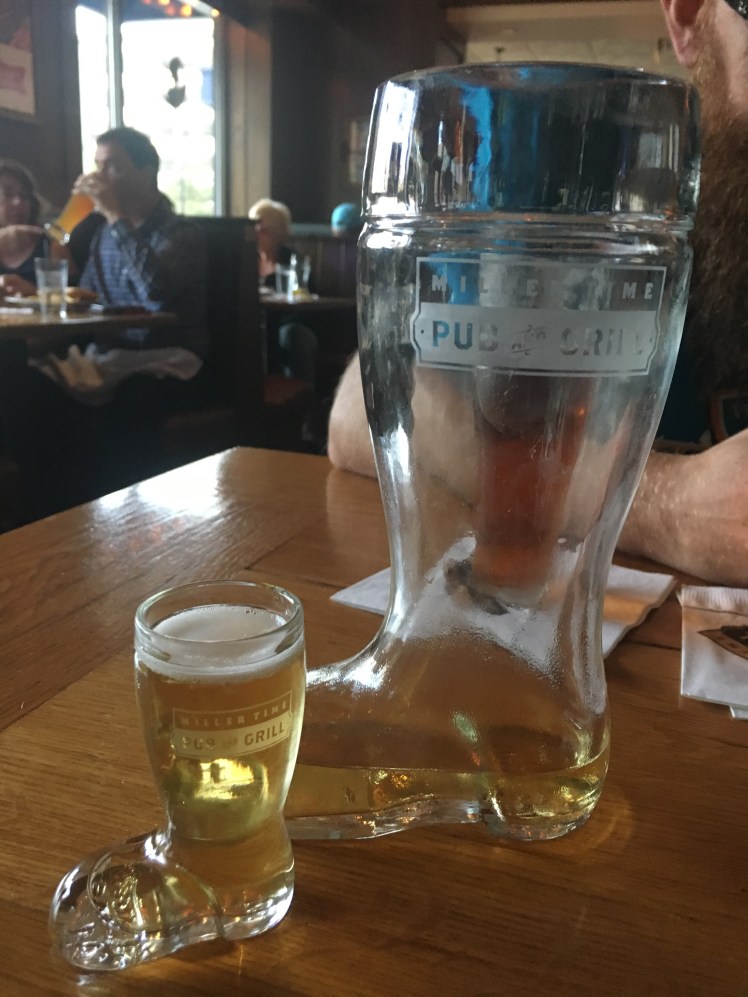 Since the Miller Valley brewery tours were closed, we settled for the next best thing. Dinner at the Miller Time brew pub. Indulging in some of our favorite macro-brews (aka Miller Lite), we both agreed it tasted better drinking it right there where its made! Plus if that wasn’t good enough, they served all their local brews in a boot.