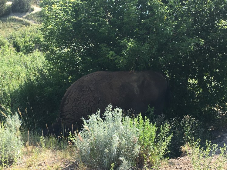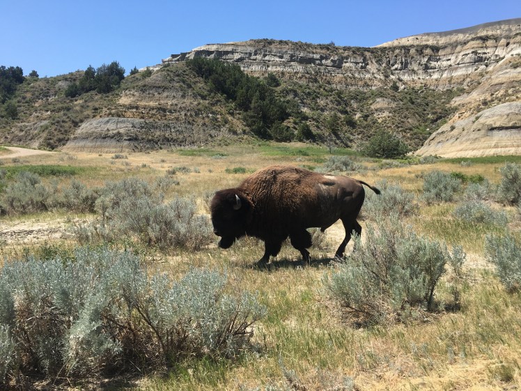 The first portion of the park that we came upon was the Painted Canyon. As soon as we turned into the pull off there was a bison bull just strolling along the grounds. There was a gift shop and we bought pretty much everything with Teddy’s likeness on it. The canyon was gorgeous.