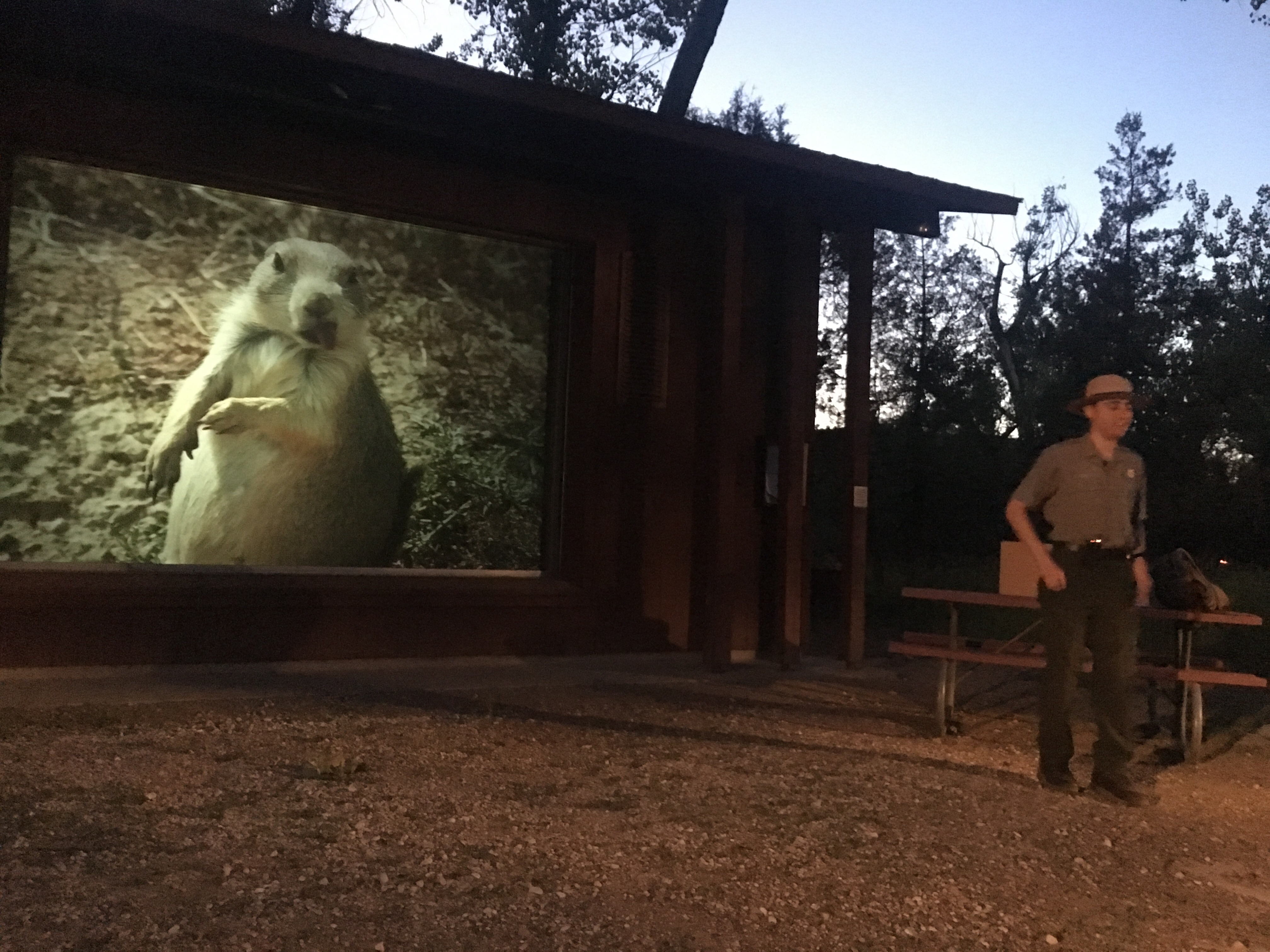 We settled in for our first few nights of camping on the trip at the campground in the park. Both nights we were there a park ranger hosted evening programs. We enjoyed “Life at the bottom of the food chain” (all about prairie dogs) and “Megafauna Management” (how they control the population of their larger animals in the park.