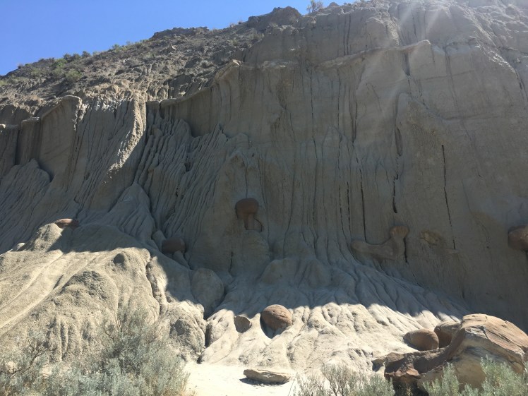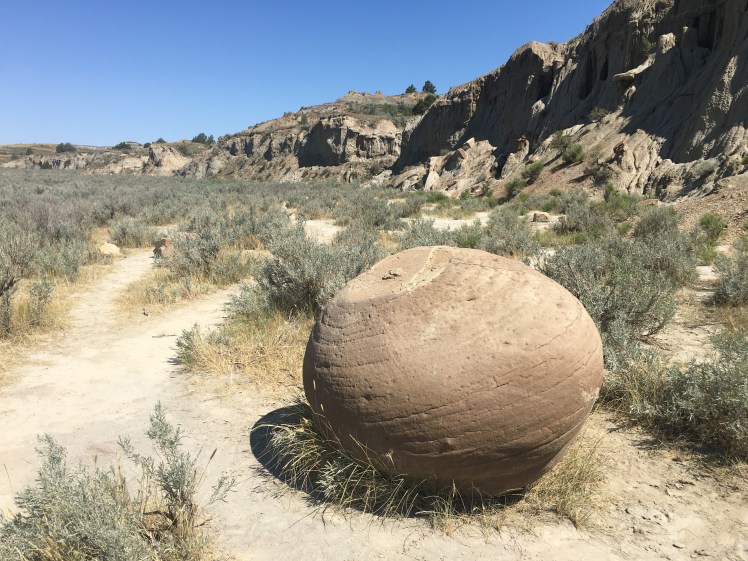 On our second day we took the drive to the North Unit. While the south unit is in Mountain Time zone, the North Unit is in Central Time. A few of the things we saw here were cannonball concretions, longhorn cattle, and more prairie dogs. The highlight by far was following the huge buffalo down the center of the road for about 10 minutes. We just have to let them do their thing and not rush them along!