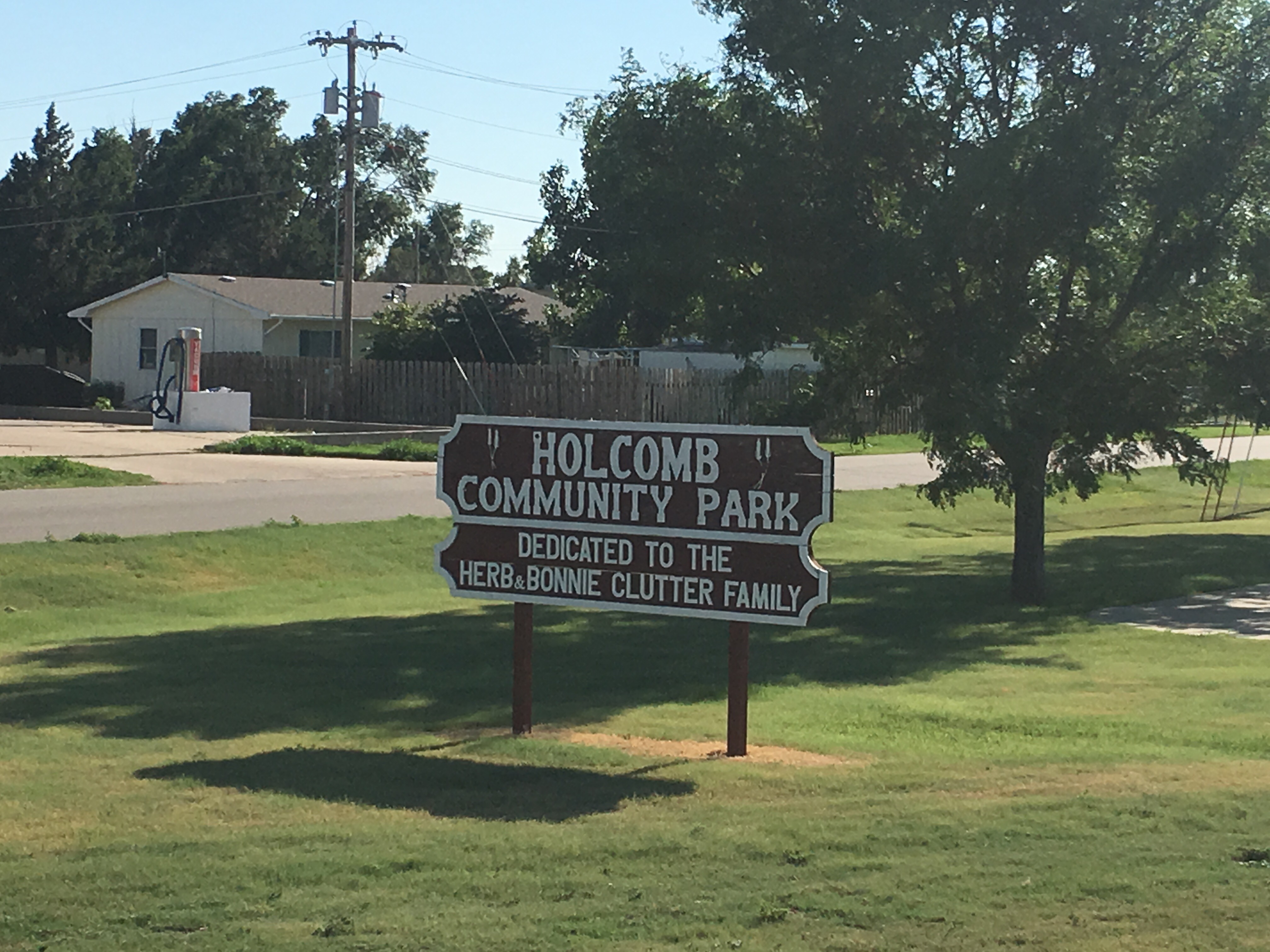 As we drove from Colorado we visited the western portion of Kansas first. Pretty flat, lots of windmills, and small towns marked by maybe a water tower if they were lucky. Our first pit stop was Holcomb, Kansas, the site of Truman Capote’s non-fiction real life crime novel In Cold Blood. If you read it, it’s probably one of your favorite books. If you watched any of the movies about it you probably are thinking about the murder of the Clutter family right now. Unsettling, right?