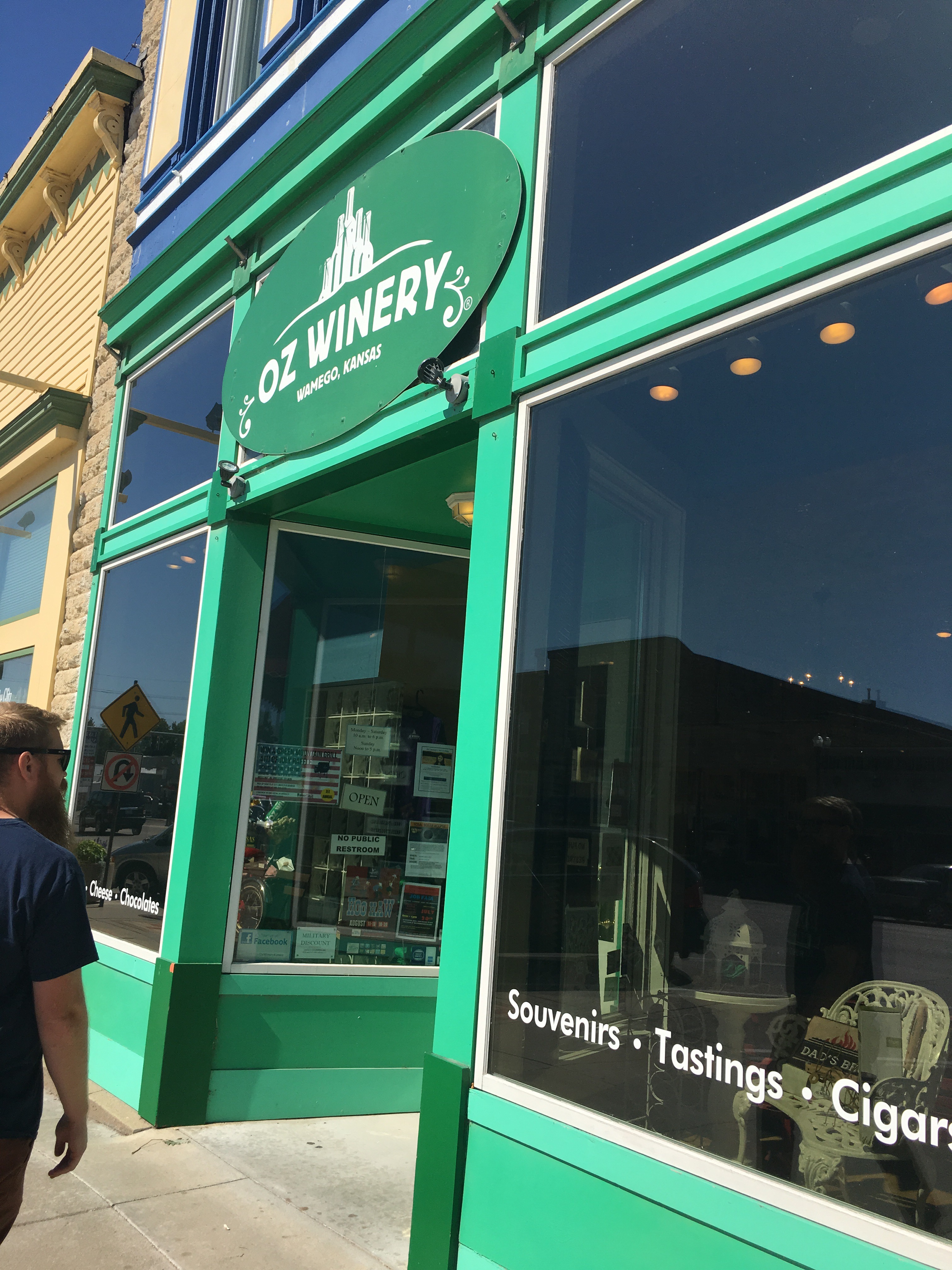 The next morning we were only about an hour away from Topeka, but we stopped in a town called Wamego, KS after seeing billboards for the Wizard of Oz museum and winery. This small little town totally embraces the Wizard of Oz acclaim. Their restaurants and business establishments have names like “Toto’s Tacos”.