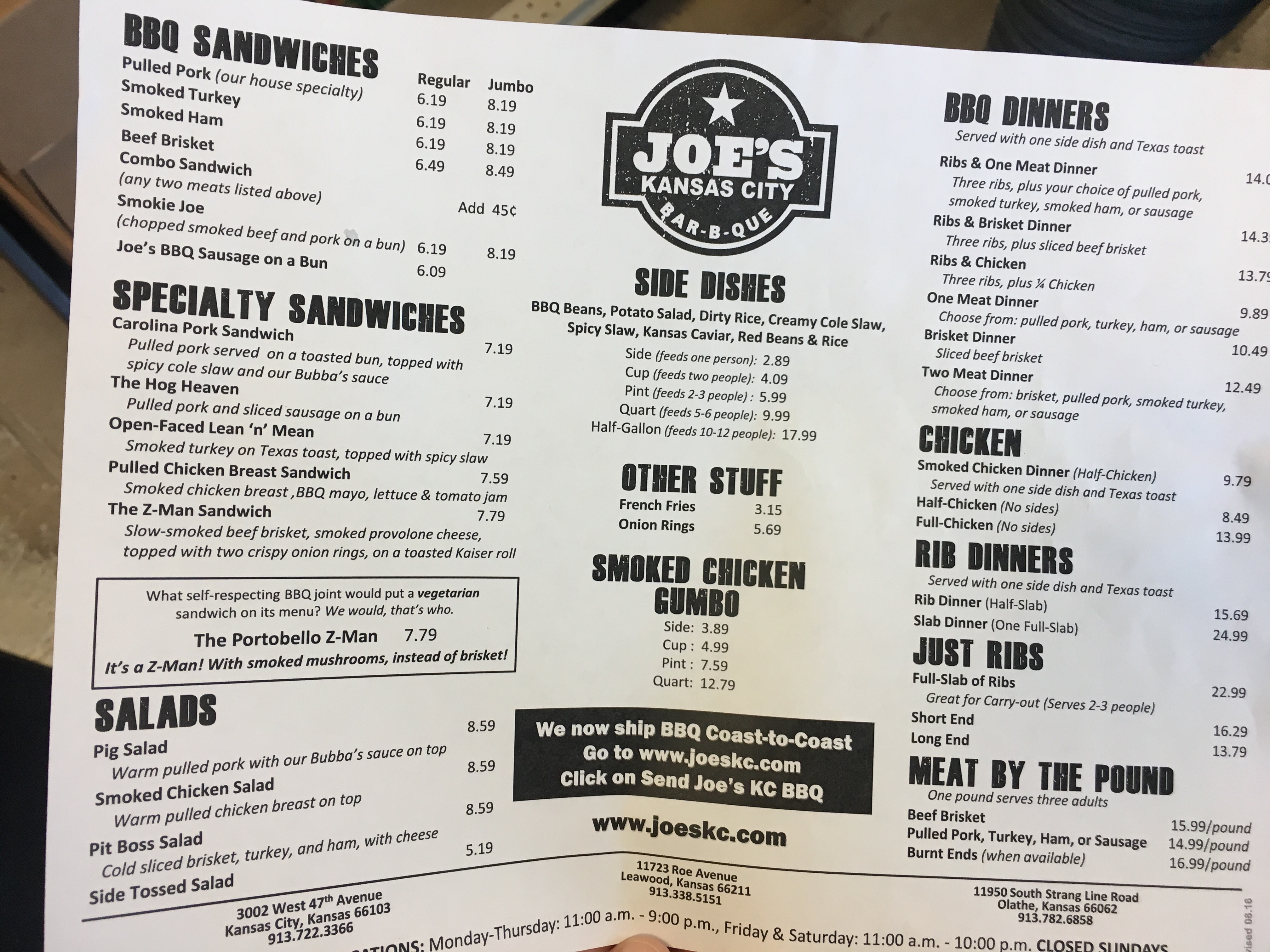 Its been a full day already and its not even lunch. We continued to Kansas City, Kansas and stopped a place called “Joe’s Kansas City”. So it’s a rib joint that is attached to a gas station.