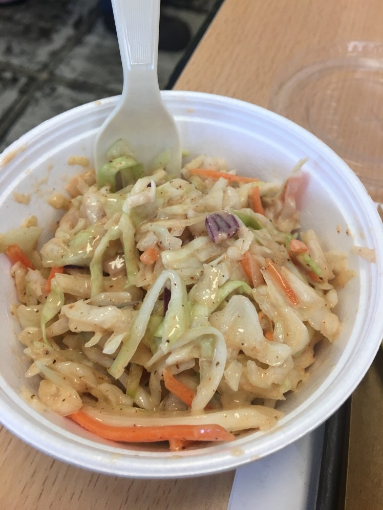 Oh and it was. John got the half slab of ribs and said they are easily the best he has ever had. Danielle got the Portabella Z-man. The fries were seasoned with their in-house seasoning, and the spicy coleslaw could stand-alone.