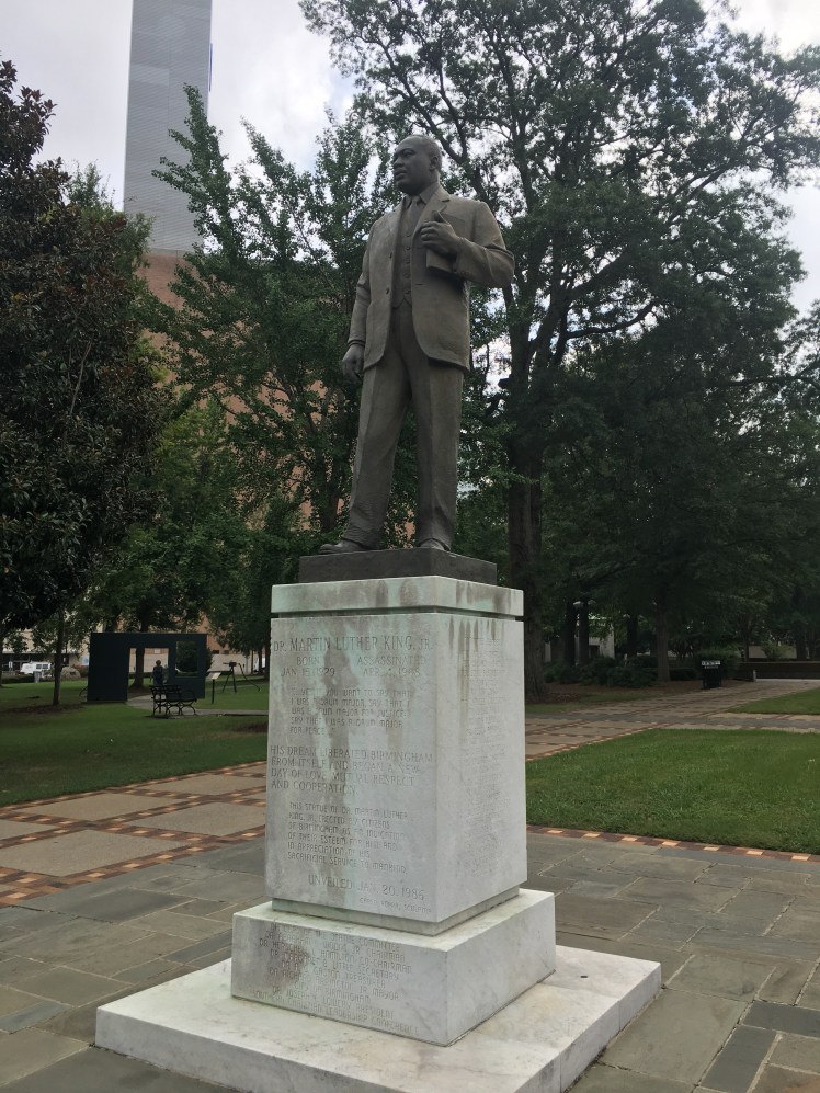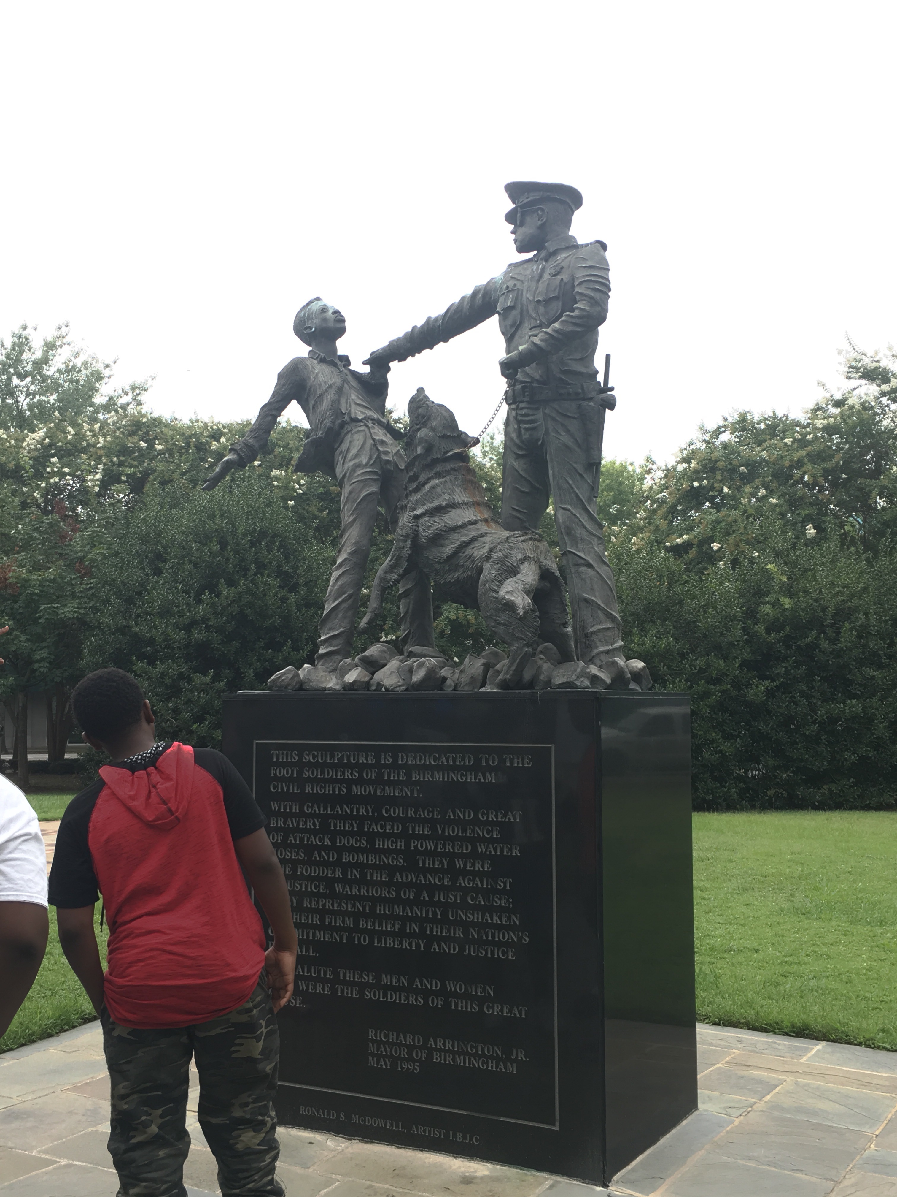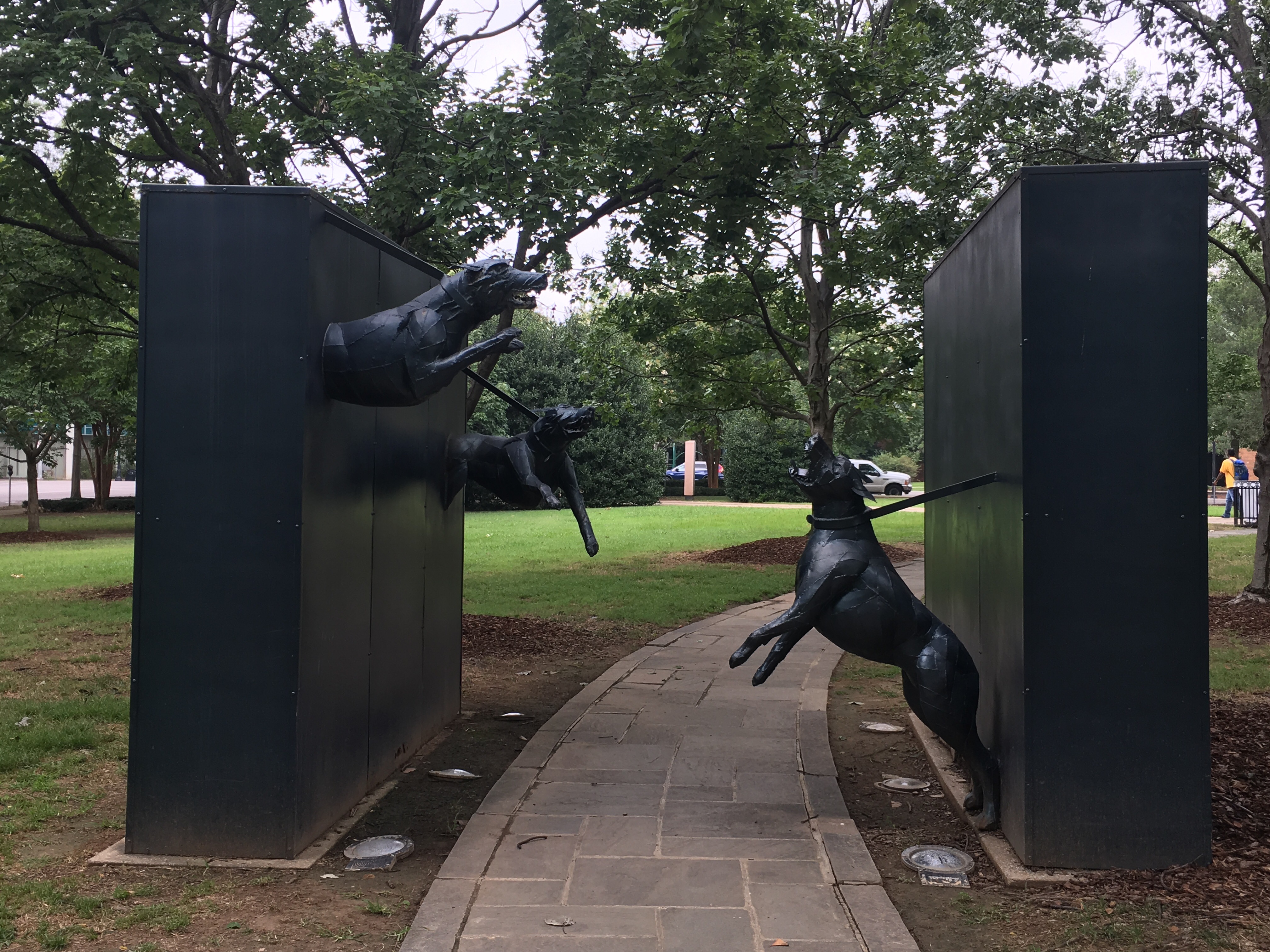 Across the street from both the Civil Rights institute and the 16th street Baptist church is Kelly Ingram Park. Once the site of protests and the Children’s march, the park now hosts a freedom walk with powerful statues that illustrate various aspects and interpretations of the movement.