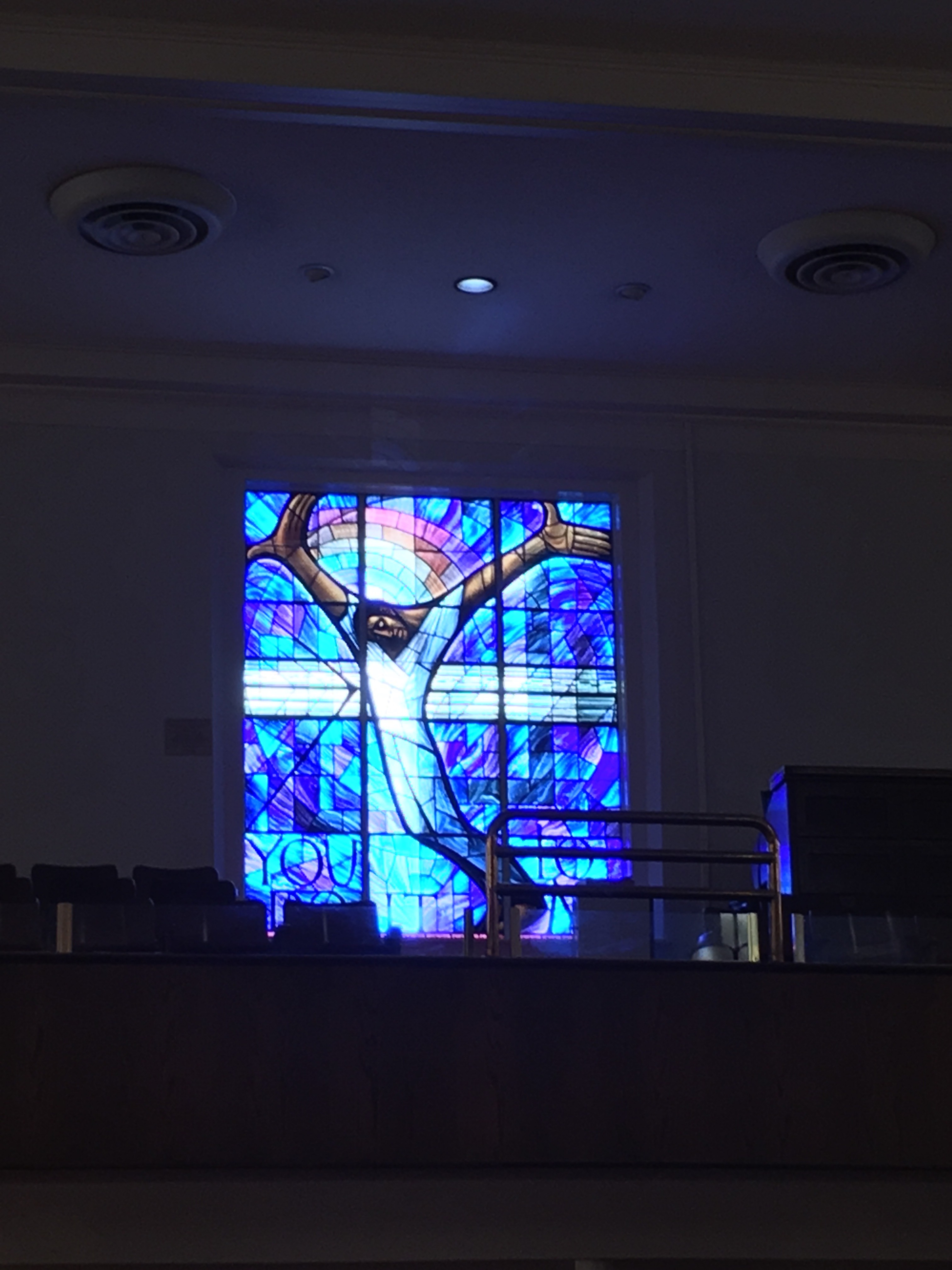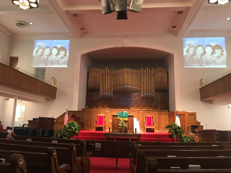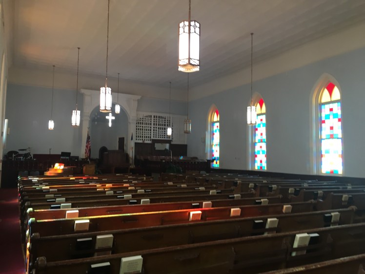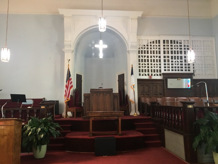 We went inside and were greeted warmly by a church member that would be our tour guide. There was a family already there and she said we could join then since we were waiting for a church group of about 20 from Memphis, TN before she started. She took us upstairs and we were able to admire the pulpit before going downstairs to join the group.