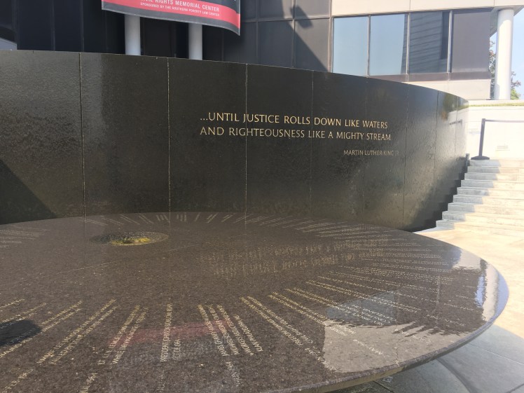 As the capital of Alabama, Montgomery alone has a lot of things to do and see. We wanted to stick on the civil rights trail so we started out at the Southern Poverty Law Center. They have a fantastic monument outside with a tablet with names/events of 40 individuals killed during the civil rights movement. There is a space left blank with the time before and after the movement.