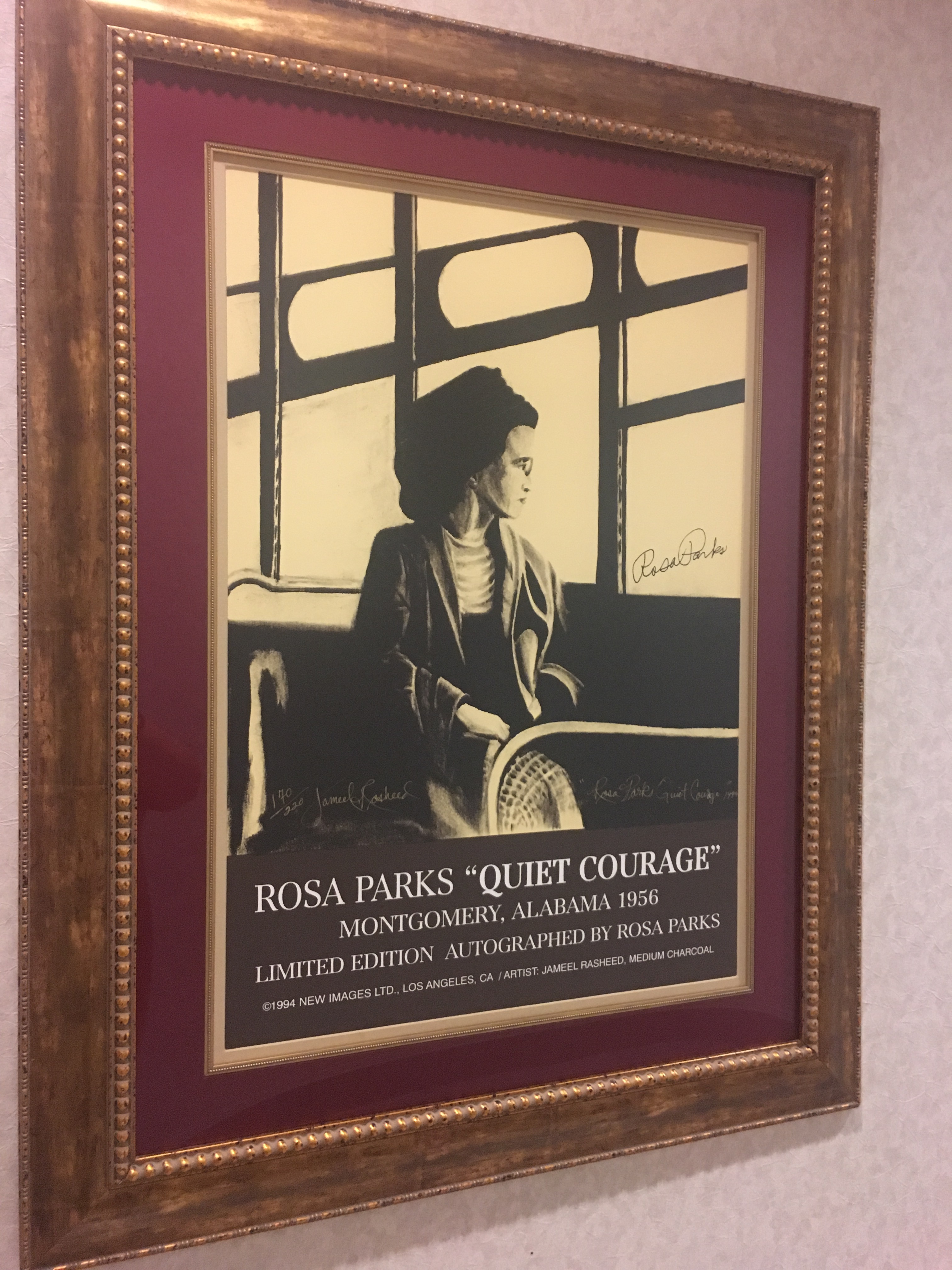 Our last stop in Montgomery was the Rosa Parks Museum. There were no pictures inside of the exhibits but the immersion into the bus boycott it provided was really outstanding. They had her police booking and fingerprints from when we was arrested, as well as additional information about the rest of her life.