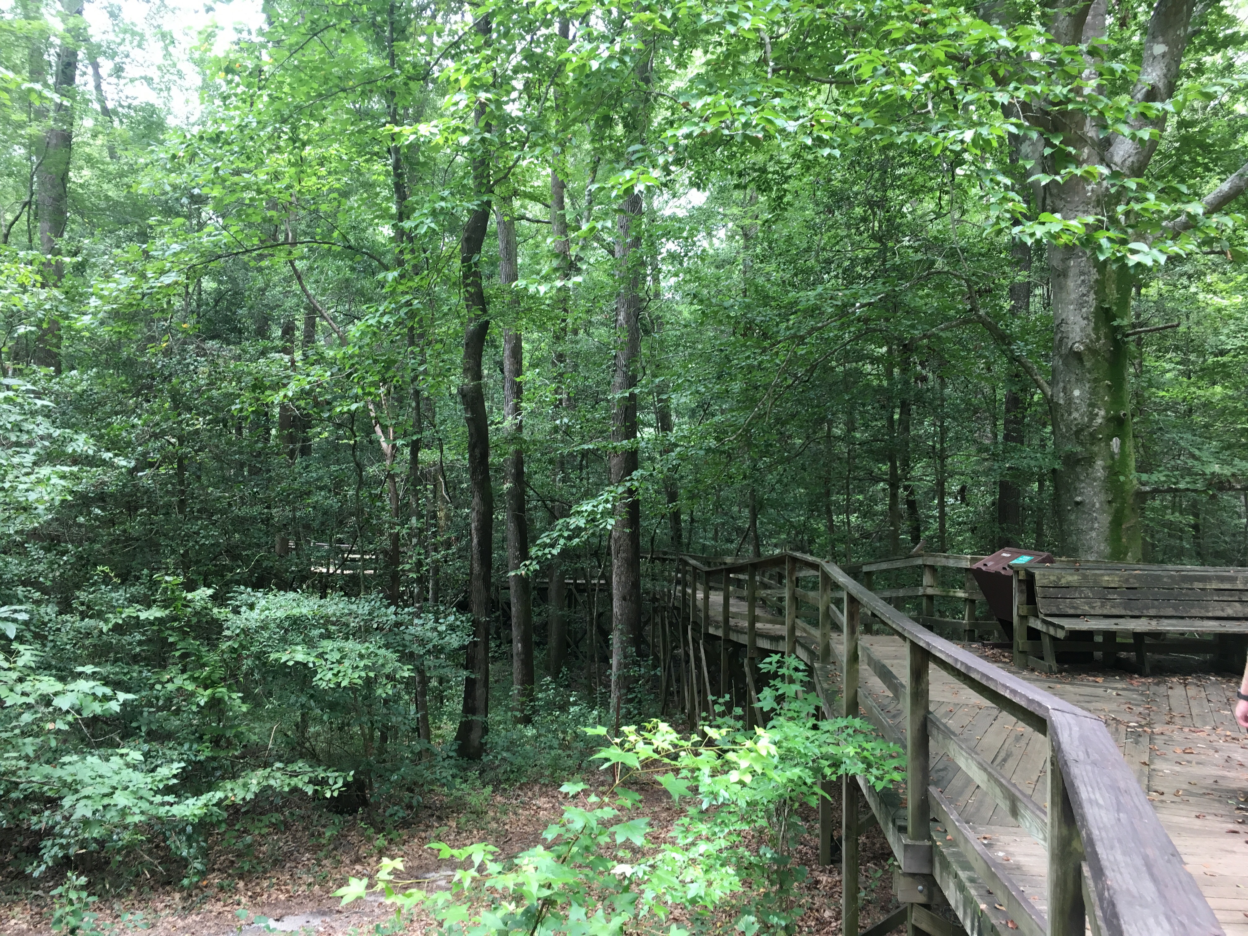 So the big thing to do is to walk on the boardwalk trail that leads you on a loop down to the lake and back. There are about 20 stops along that way of a self-guided tour. However, two different sections of the boardwalk were closed. One had been under repair, and the other had just been closed that morning due to a fallen tree. So we were able to walk around most of the trail, went out and back and then took another, somewhat muddy trail down to the lake.
